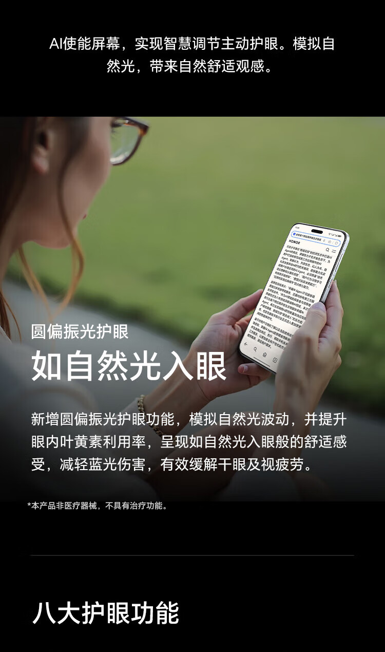 高频PWM调光;巨犀玻璃;SGS认证;德国莱茵护眼;LTPO屏幕