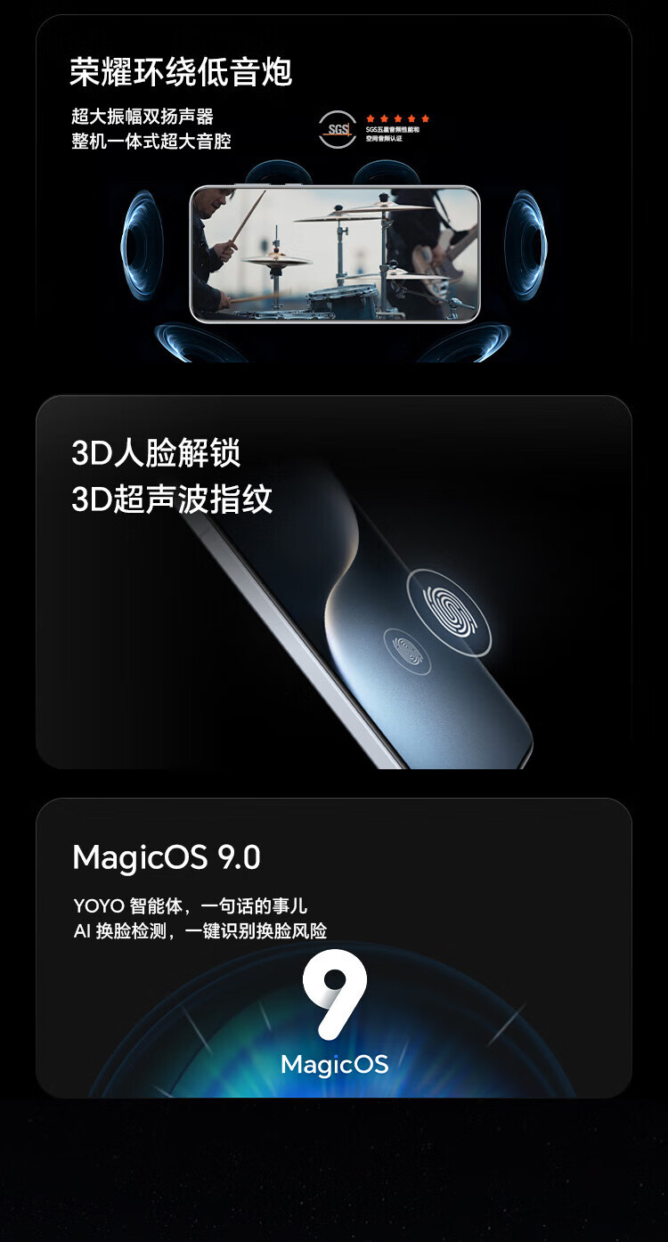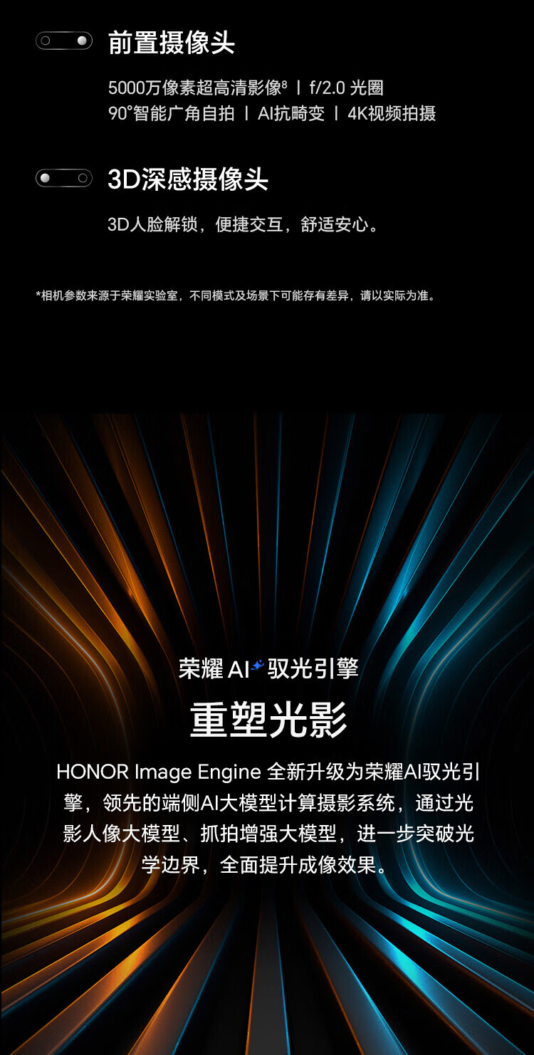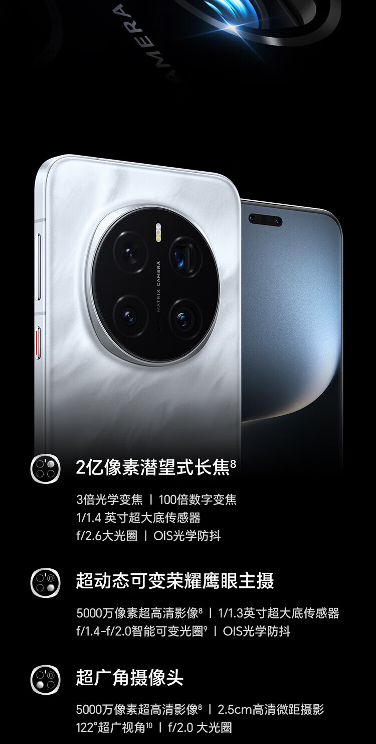 AI大模型,轻薄,LTPO屏幕,高频PWM调光,全焦段影像,潜望式长焦,防水防尘,无线充电,NFC,红外遥控,大底主摄,等深微曲屏