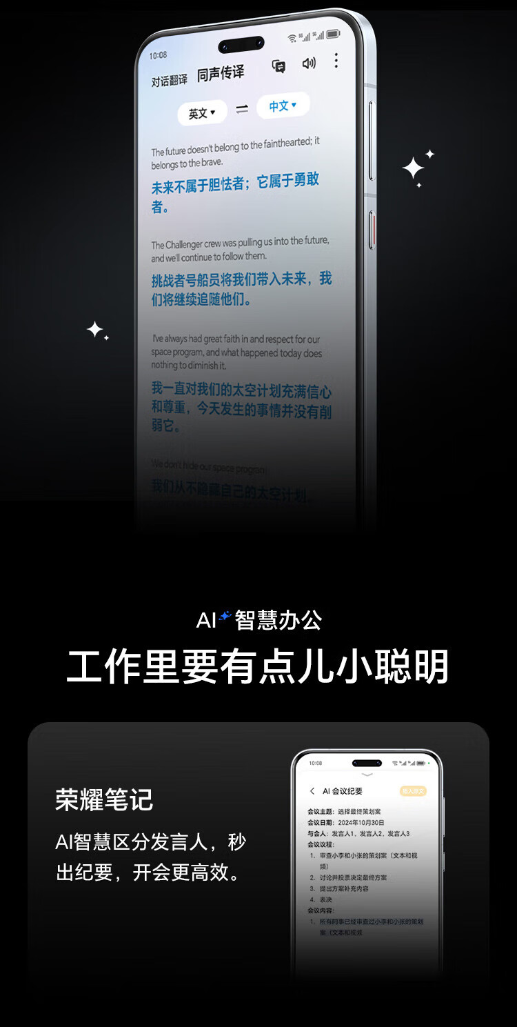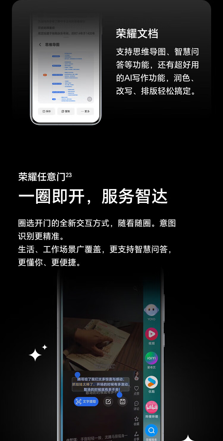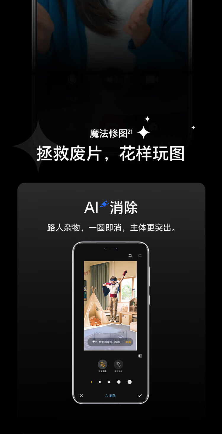 AI大模型,轻薄,LTPO屏幕,高频PWM调光,全焦段影像,潜望式长焦,防水防尘,无线充电,NFC,红外遥控,大底主摄,等深微曲屏