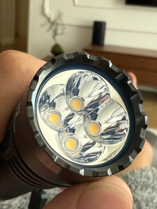 大泛光,4颗灯珠导致光斑形状不好,但是问题不大,选的519a灯珠,参数偏低,但是光色很正,显色性很好,和我这盏卤素灯比起来也是不错的,并且不会有卤素色温偏低的问题,非常好,适合有目的性的出门用,做工非常好,扎实,颜色好看,但是重、大,所以日常携带的实用性不高,edc还是轻便一些,功能多一些更好玩。