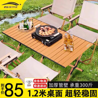 北岳户外折叠桌子便携式蛋卷桌可折叠野餐桌摆摊烧烤桌椅露营用品套装 大号120cm木纹蛋卷桌-加厚碳钢