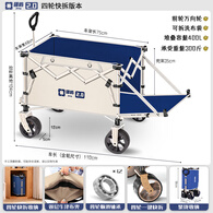 疆屿2025新款巨型露营车户外折叠聚拢摆摊野餐旅行快递小推车儿童可躺 克莱因蓝【聚拢旅途者MINI】四轮快拆 全车10静音轴承