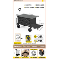 疆屿露营车野营户外折叠手推车野餐摆摊拖斗车儿童可躺超大聚拢营地车 黑色聚拢基础拖斗+碳钢桌面