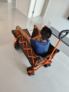 这款小推车真是太方便了!👍 橙黑配色时尚又实用,携带和存放都很方便。坚固耐用,坐着也很舒适,非常满意这次购物体验。💯