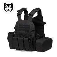 哈士顿战术背心6094多功能透气马甲迷彩通用防弹衣CS户外真人插板防刺服 黑色(送贴)