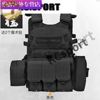 弹挂甲暗区突围可插板6094战术背心战术马甲户外 黑色2个魔术贴R51