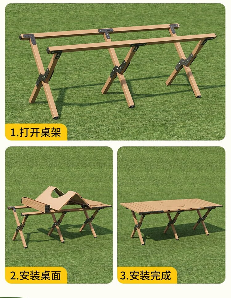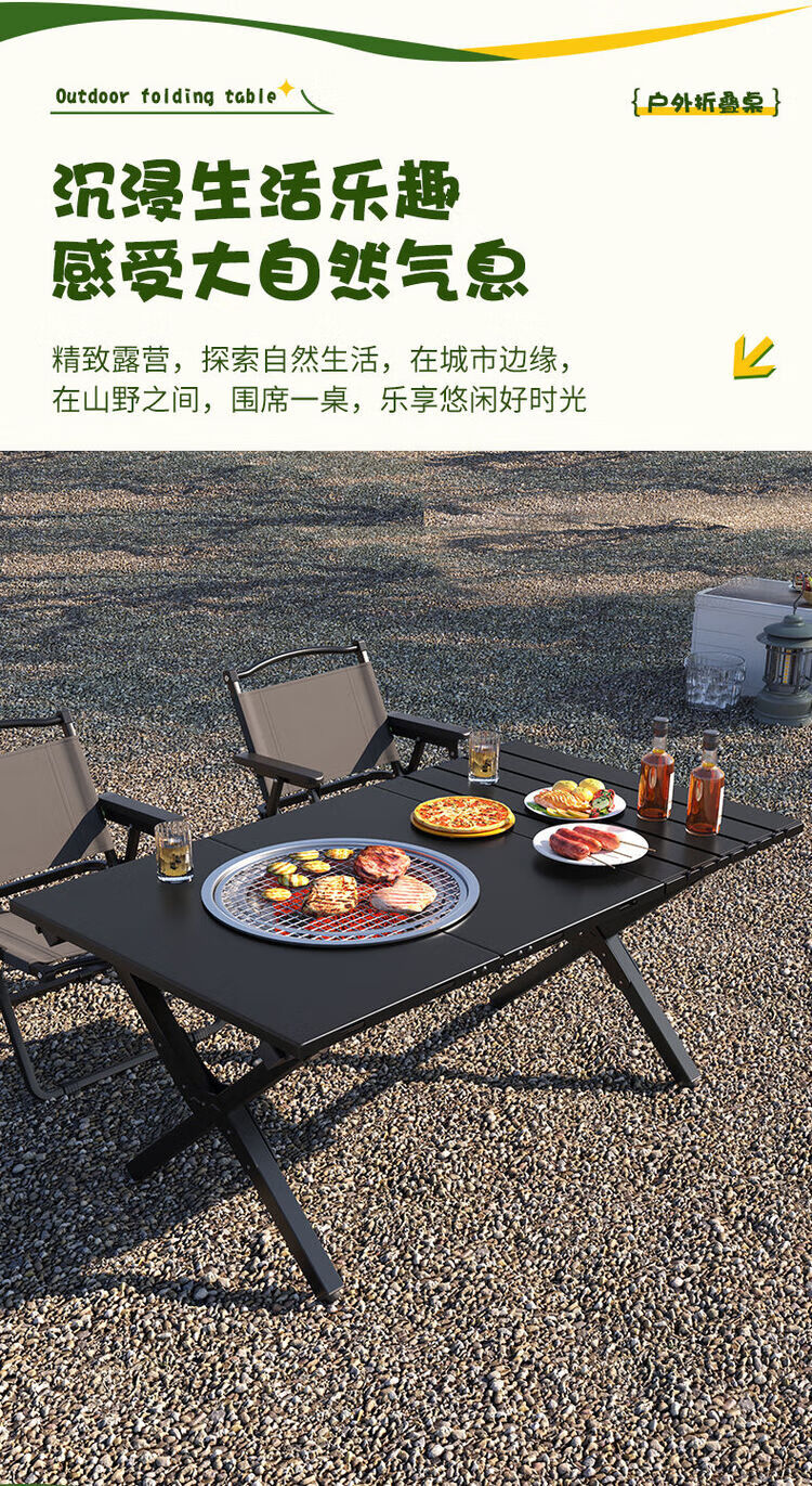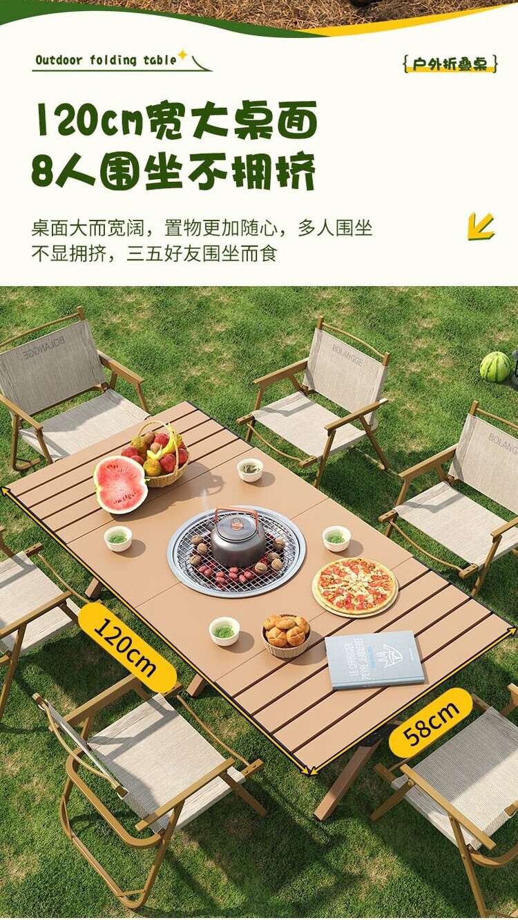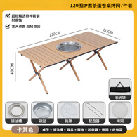 XMSJ围炉煮茶烧烤桌一体桌家用户外庭院露营烤肉折叠蛋卷桌地摊便携式 ,.120cm卡其色烧烤一体蛋卷桌【可坐2-6人】