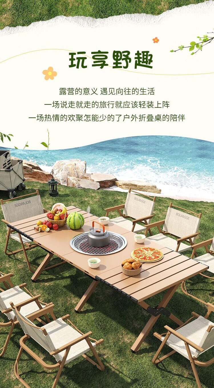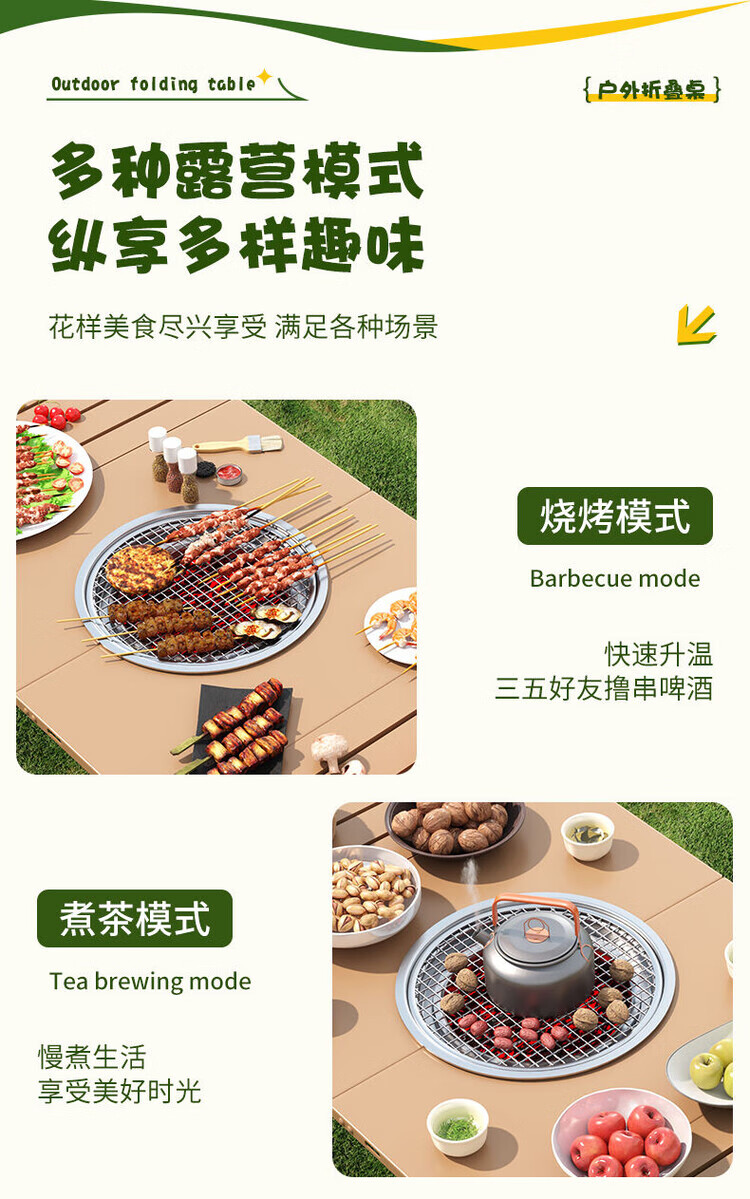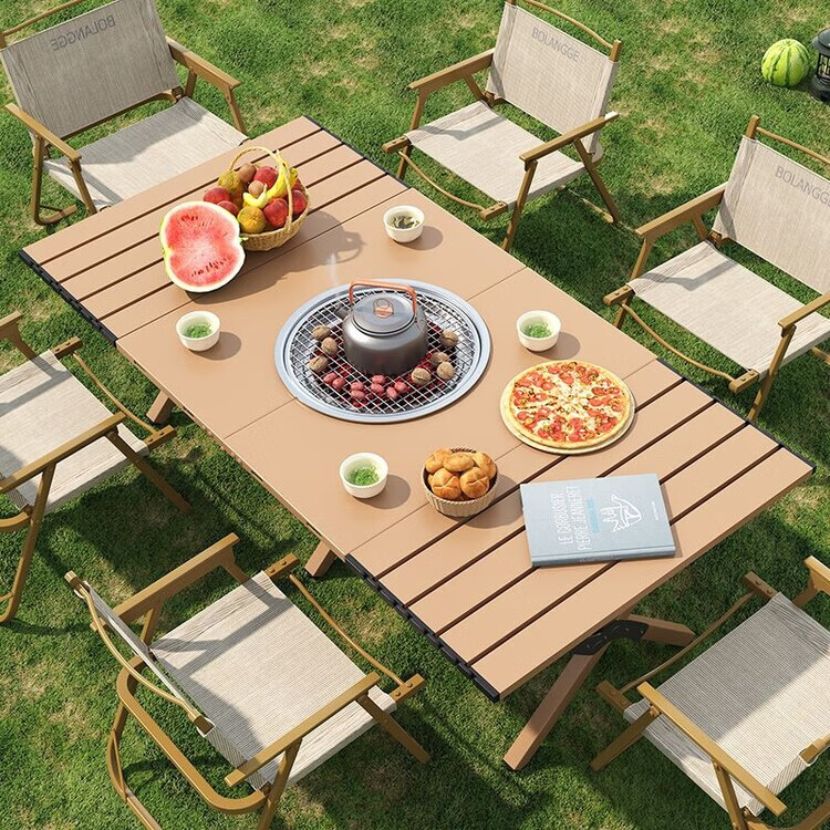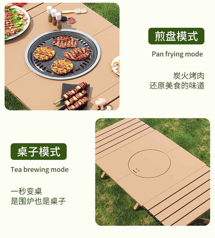 山头林村户外桌露营庭院烧烤野餐夜市摆摊户外烧烤桌子木炭烤炉长桌 茶色 【超大号】围炉煮茶(送收纳袋)