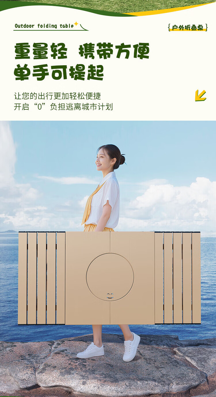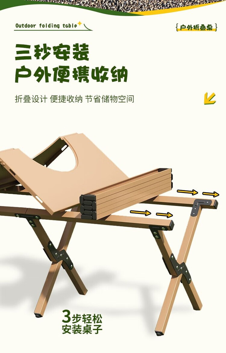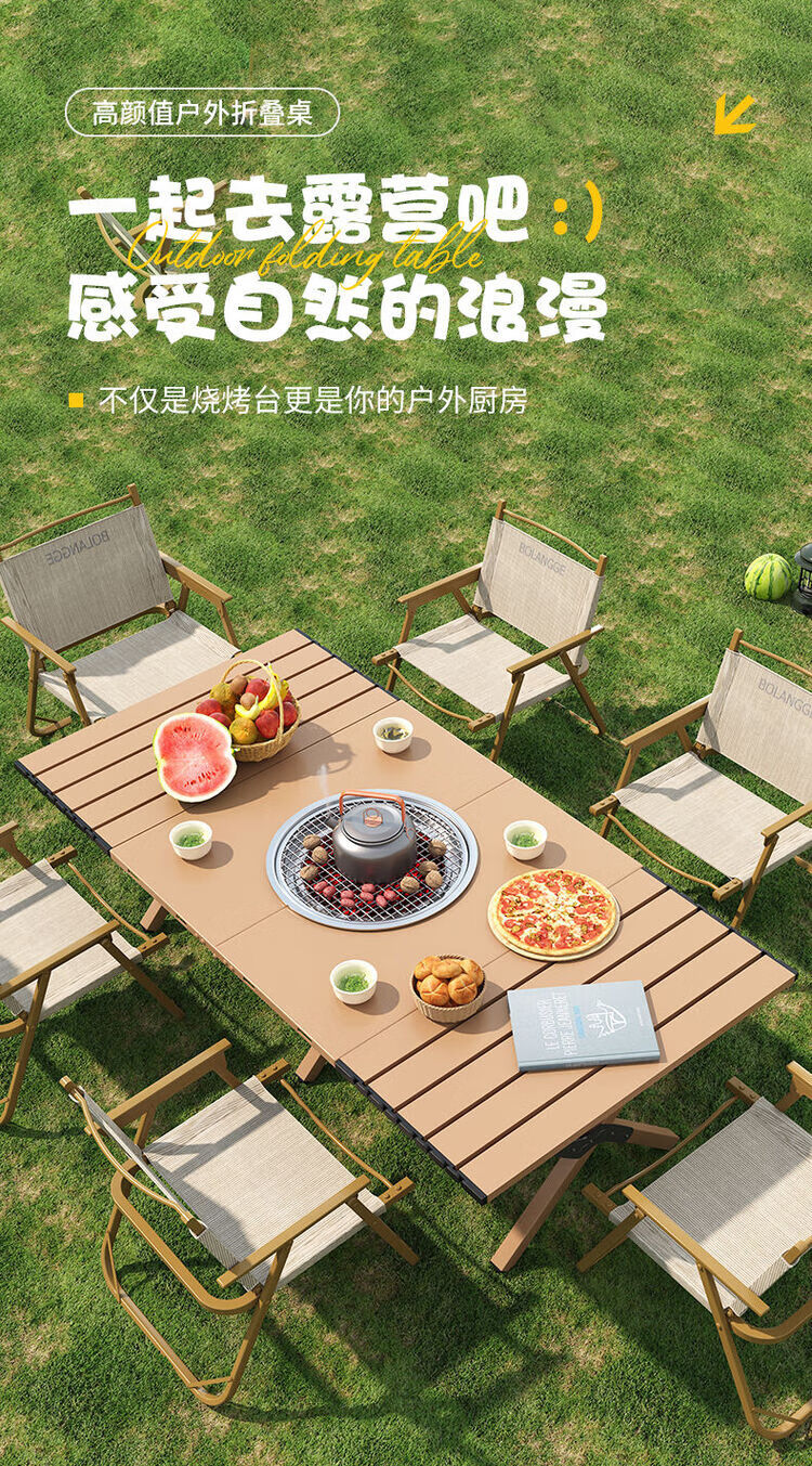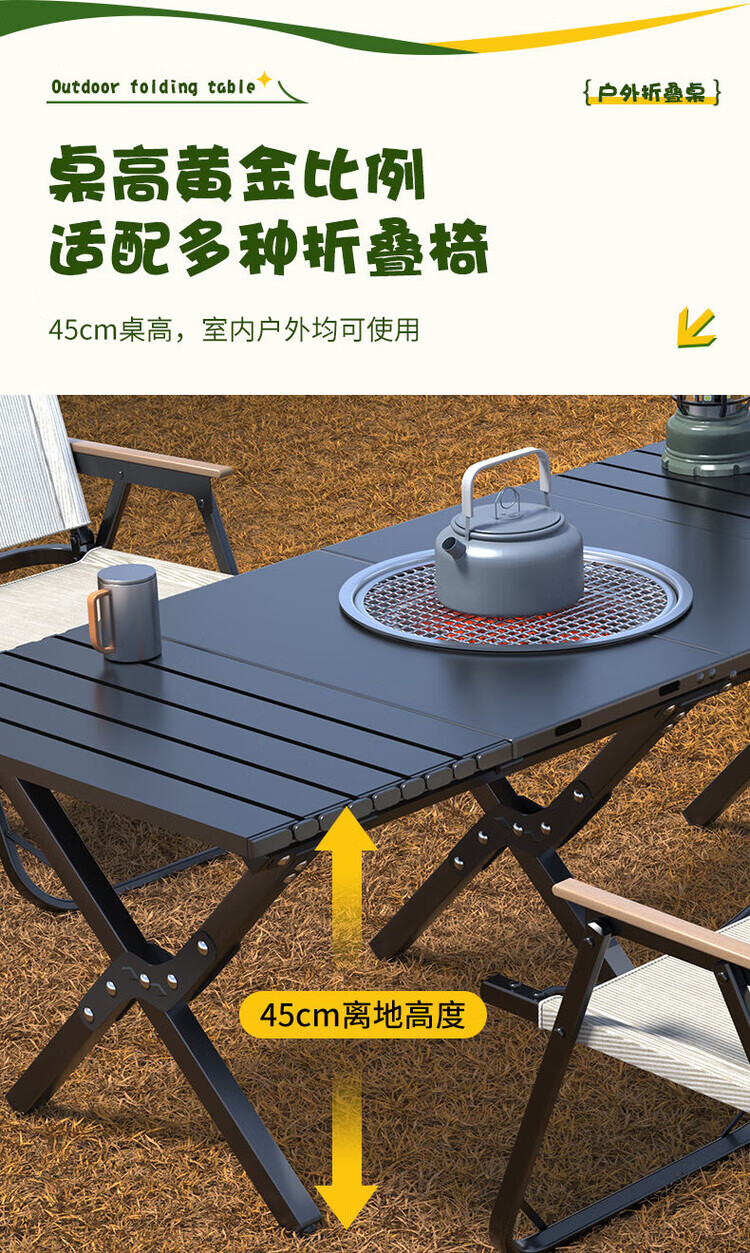 山头林村户外桌露营庭院烧烤野餐夜市摆摊户外烧烤桌子木炭烤炉长桌 茶色 【超大号】围炉煮茶(送收纳袋)