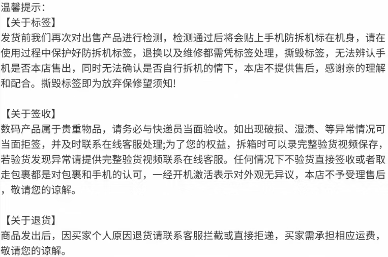 买前必看 手机为9成新到99新之间 二手手机 防撕标签不撕情况下 支持七天无理由退货 撕毁不支持七天无理由退货