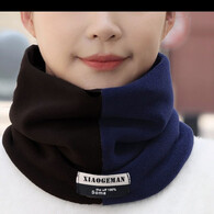 柏潮围巾男女同款秋冬季户外骑行防风加厚加绒保暖双层套头百搭围脖 拼色脖套-黑蓝