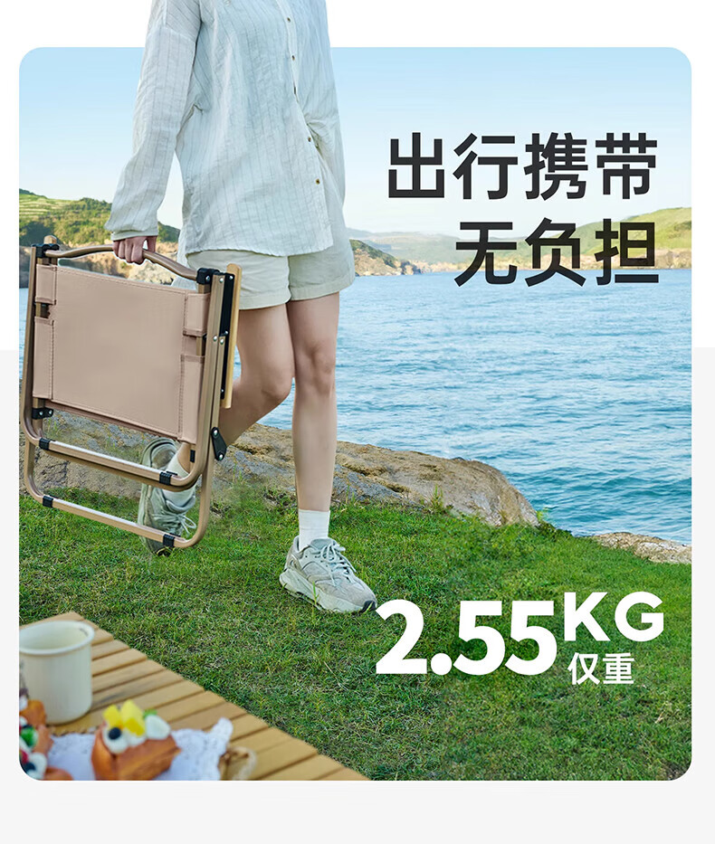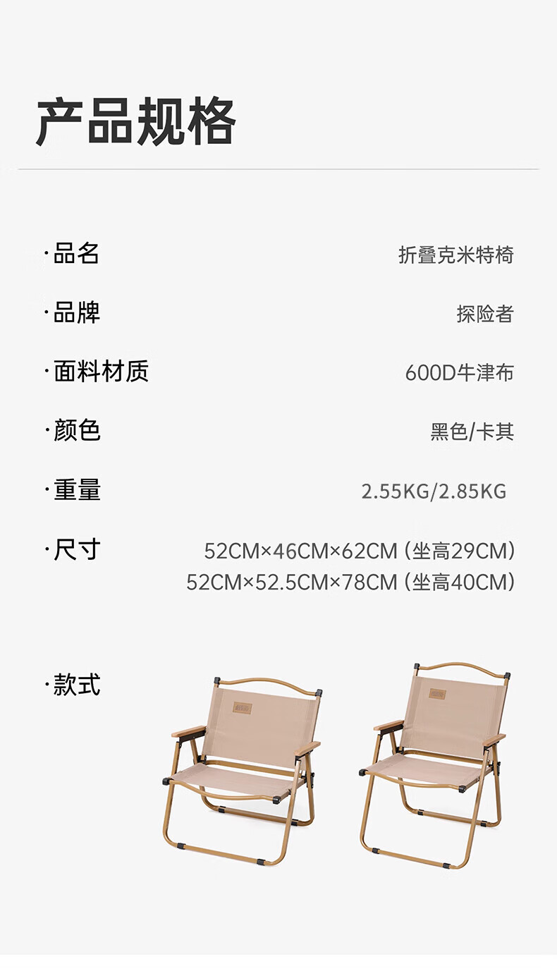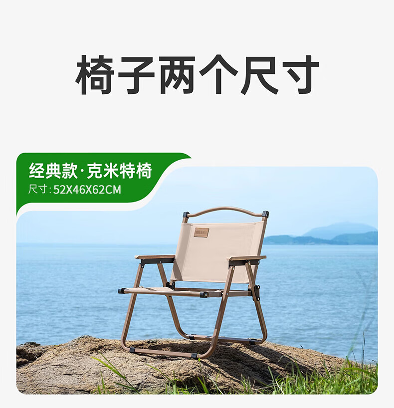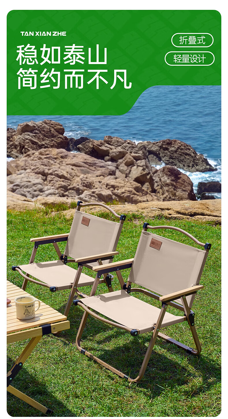 探险者(TAN XIAN ZHE) 户外折叠椅子克米特椅便携超轻露营野餐椅沙滩椅钓鱼椅子 石墨黑支架【加粗】卡其色