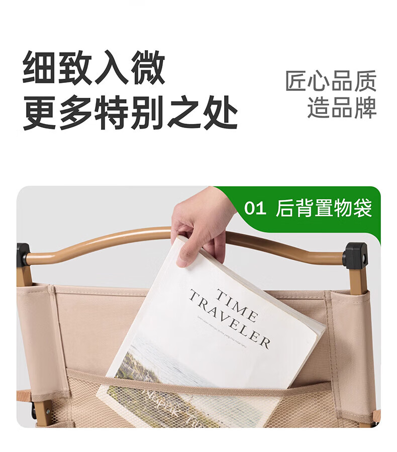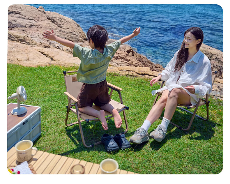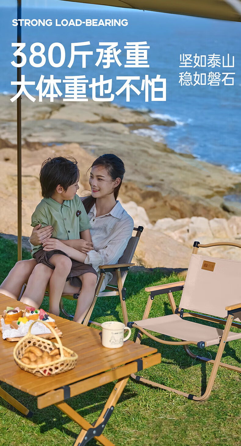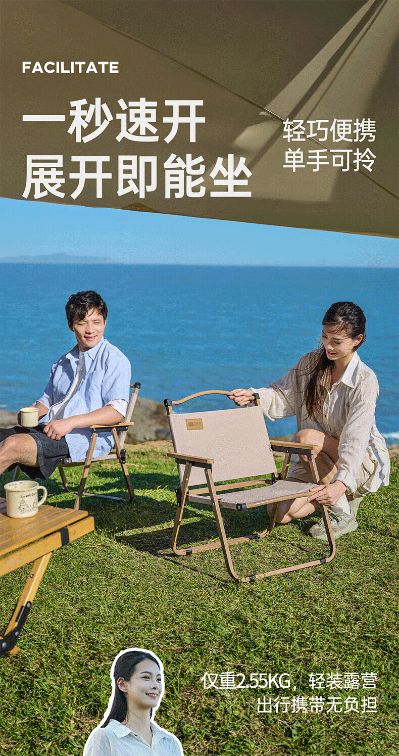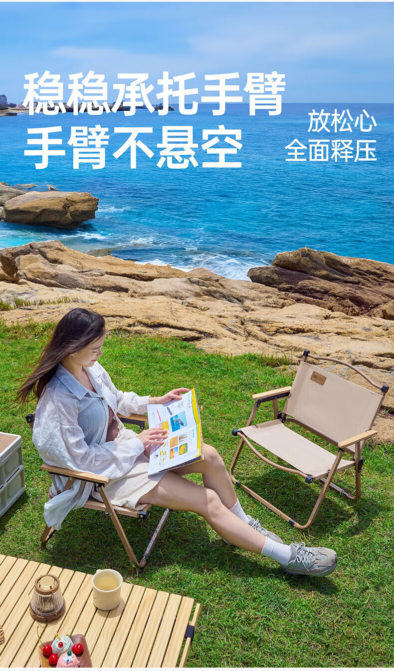 探险者(TAN XIAN ZHE) 户外折叠椅子克米特椅便携超轻露营野餐椅沙滩椅钓鱼椅子 石墨黑支架【加粗】卡其色