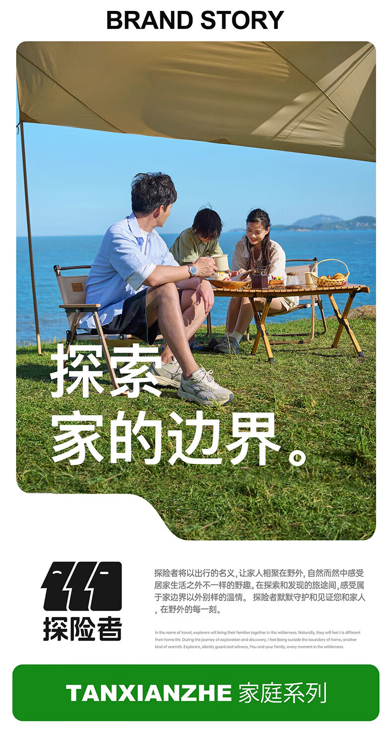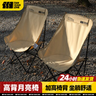 探险者(TAN XIAN ZHE)户外折叠椅克米特椅露营折叠椅子月亮椅便捷桌子野外钓鱼椅 【双层牛津布】卡其色-大号