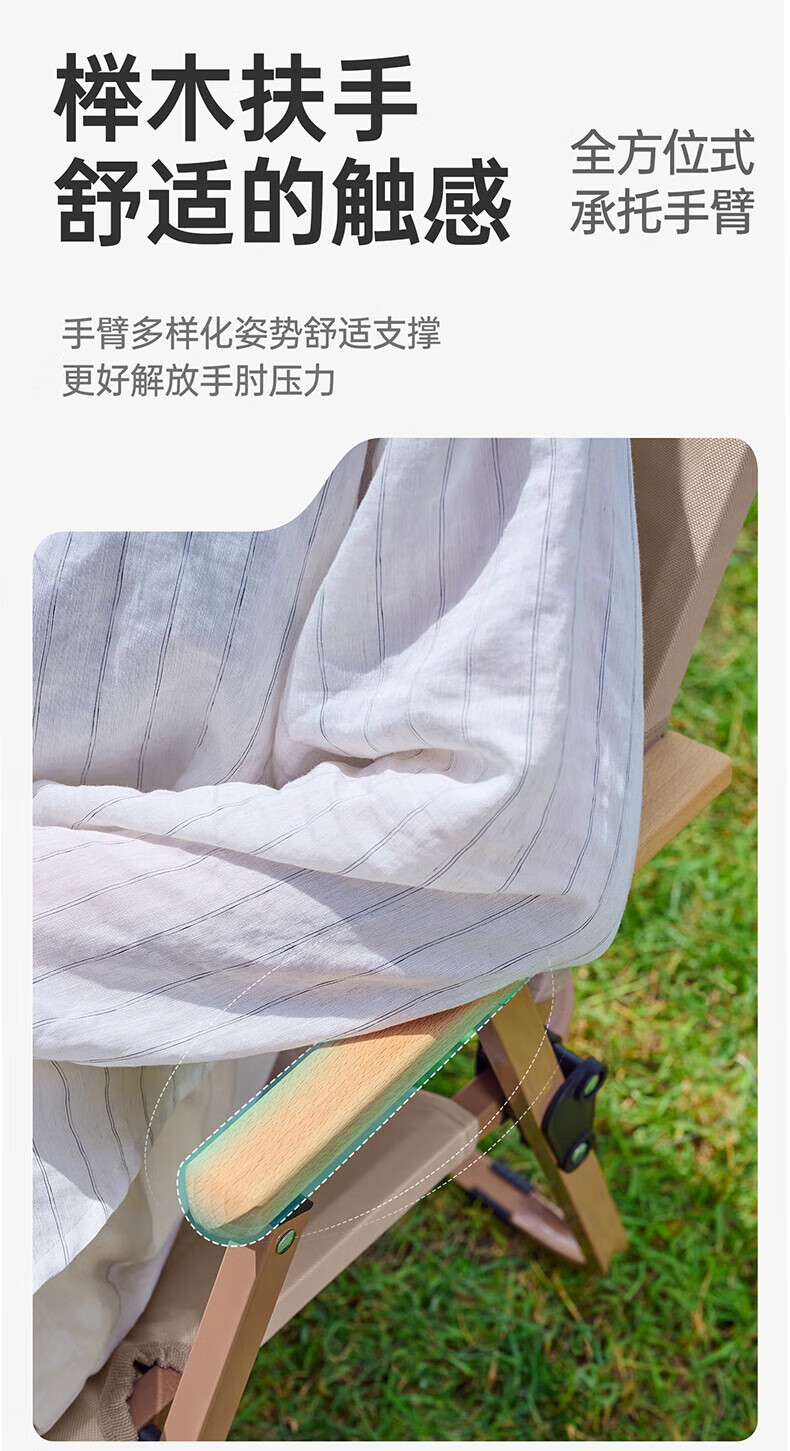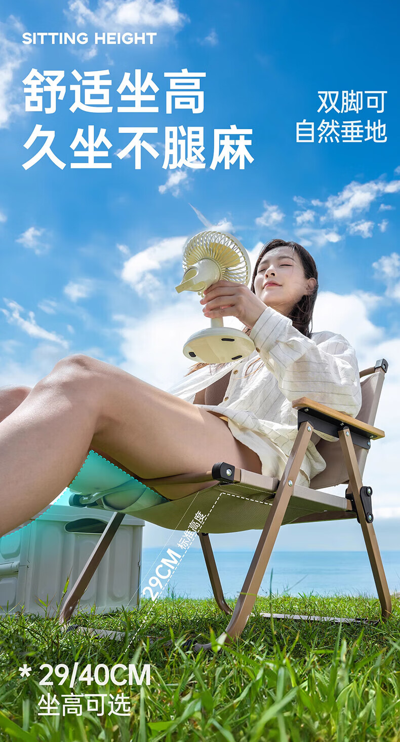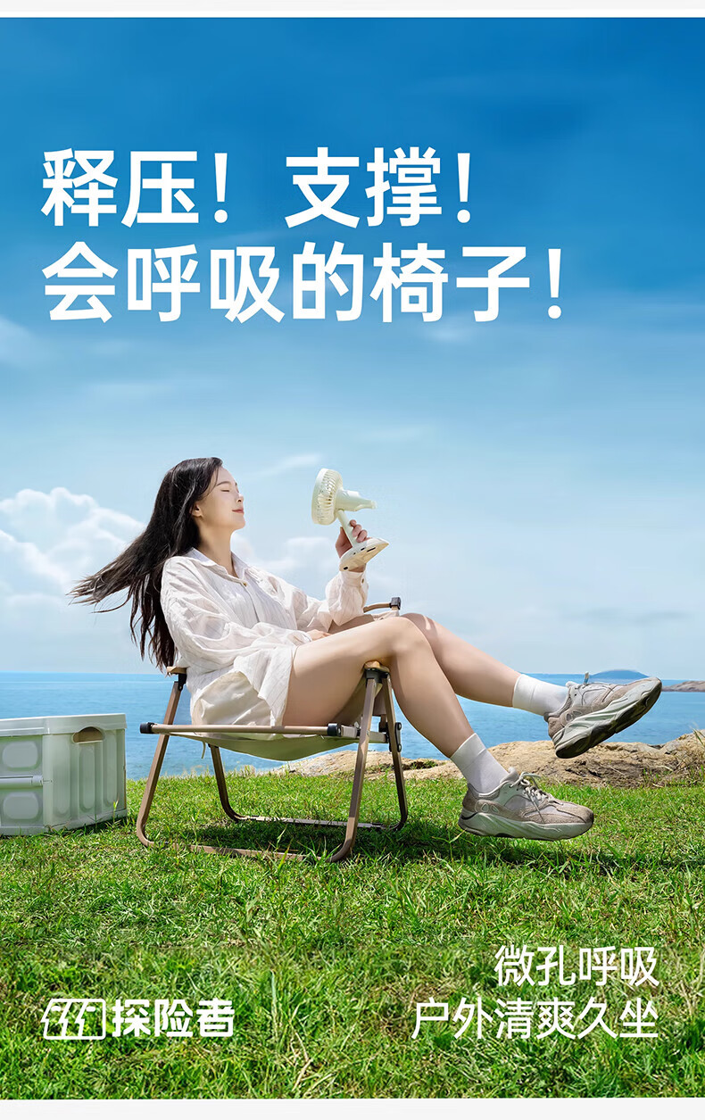 探险者高背月亮椅户外加高折叠椅露营椅子躺椅便携沙滩钓鱼椅凳野餐桌椅 【经典款-卡其色】五层夹棉