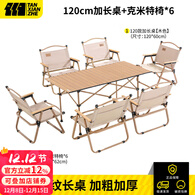 探险者户外折叠桌蛋卷桌便携式露营桌椅野餐桌子套装野炊野营装备全套 蛋卷桌(120cm)+加高克米特椅*6+后开推车