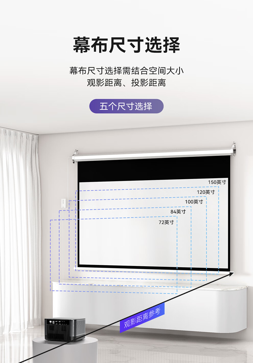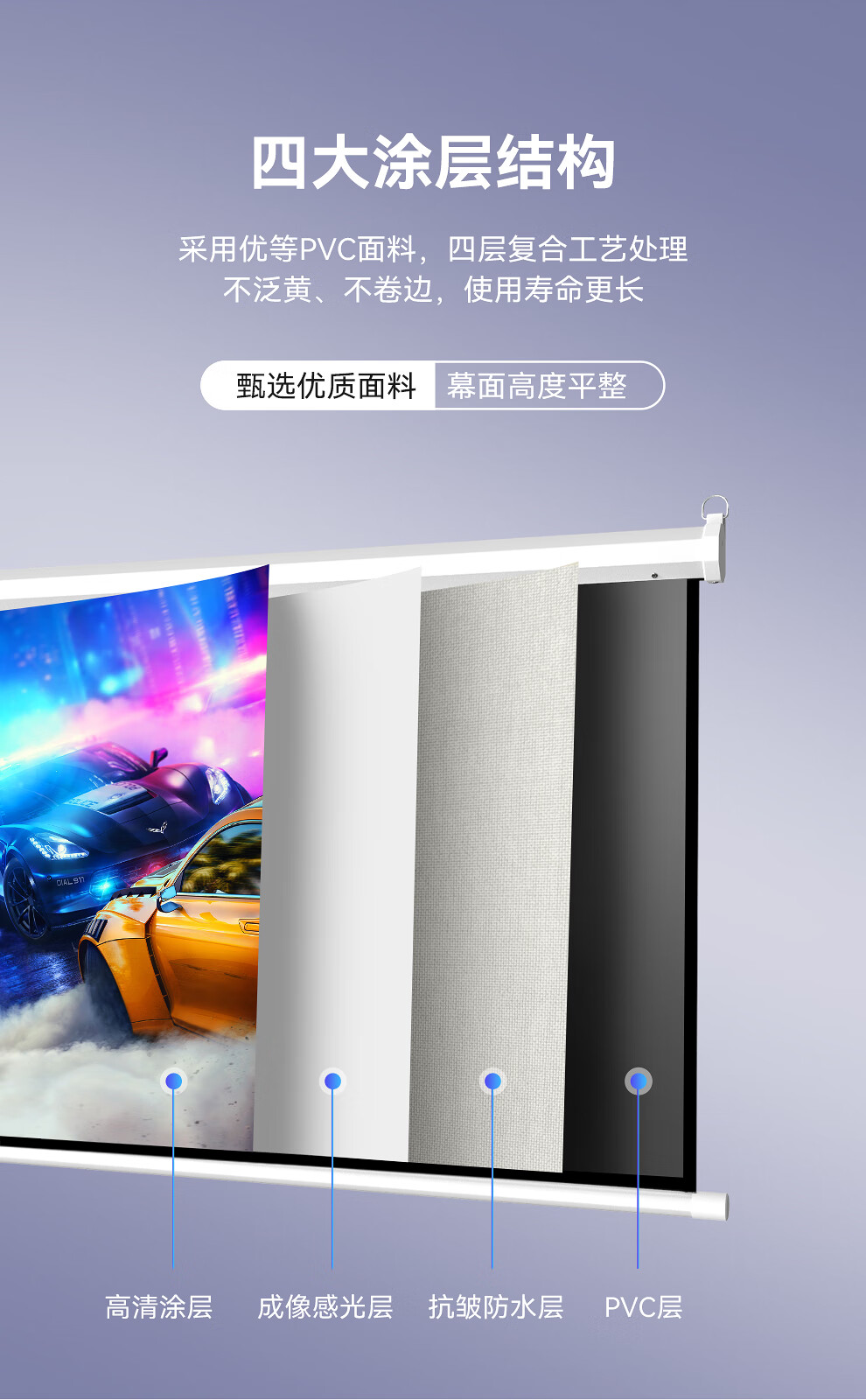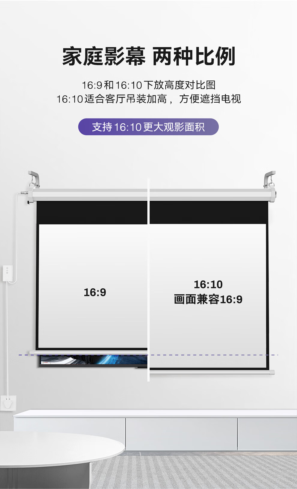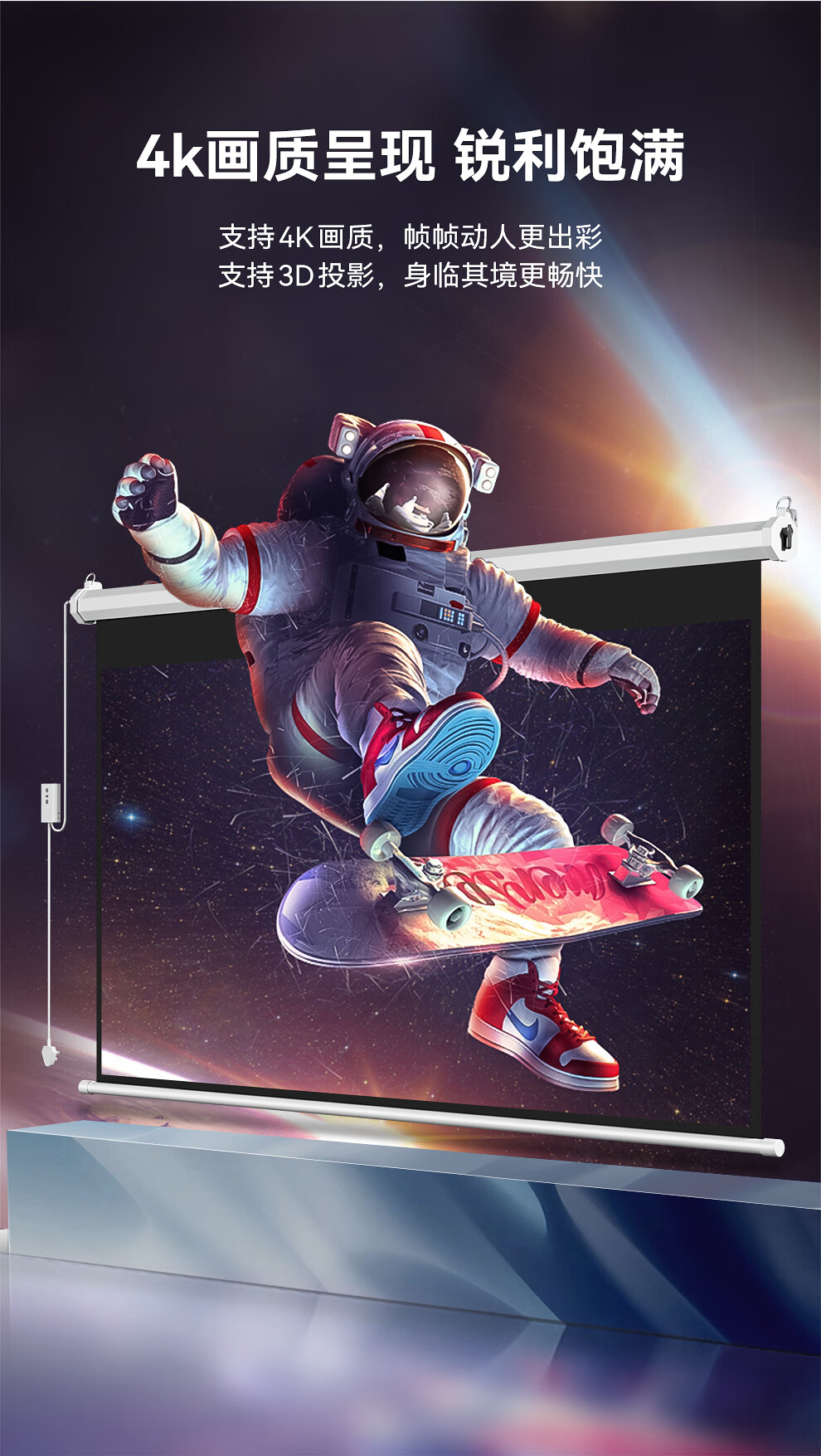 虾皮 投影幕布电动家用遥控自动升降高清4K抗光壁挂办公投影机幕布客厅卧室家庭影院投影布投影仪幕布 白塑 150吋16:9电动遥控【航空双插,双向通电】