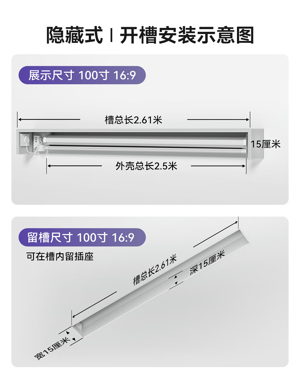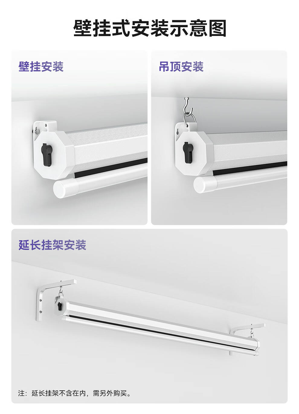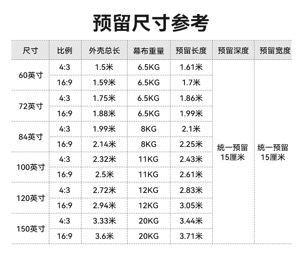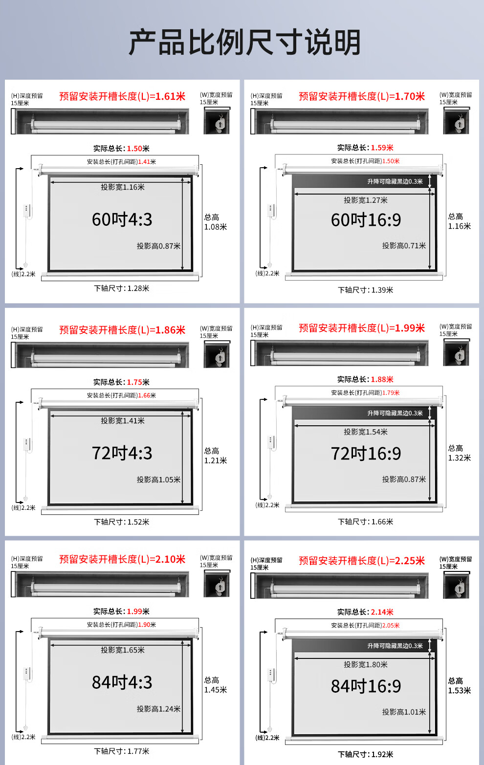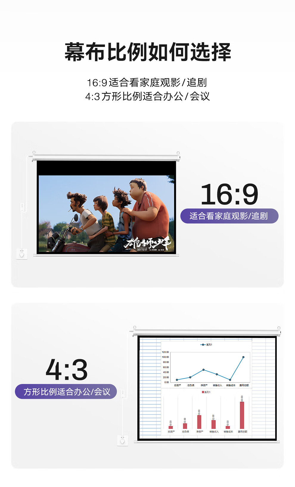 虾皮 投影幕布电动家用遥控自动升降高清4K抗光壁挂办公投影机幕布客厅卧室家庭影院投影布投影仪幕布 白塑 150吋16:9电动遥控【航空双插,双向通电】