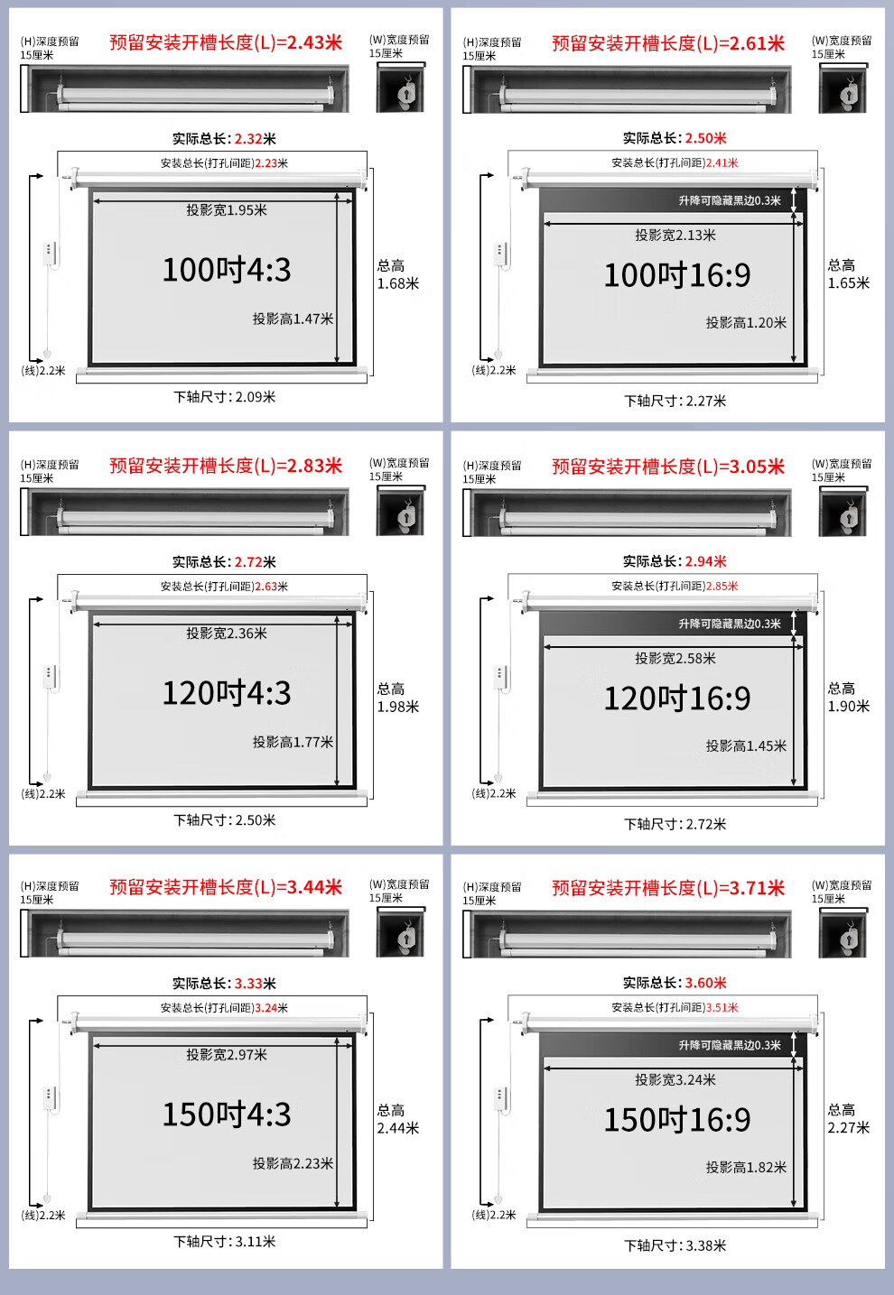 松下投影仪通用100英寸/120英寸16:10遥控电动投影幕布家用办公投影机白塑高清幕布 150英寸16:10(定制产品,预计2-3天发货)