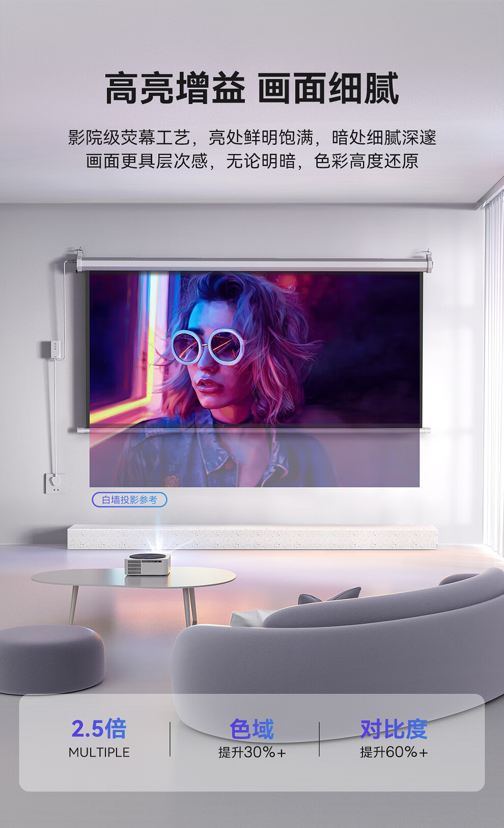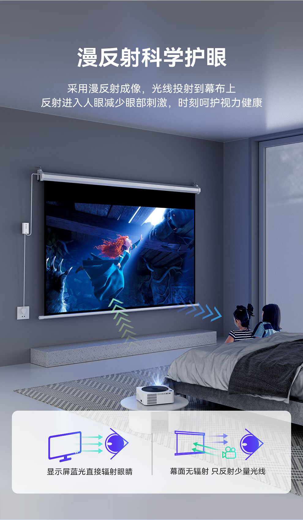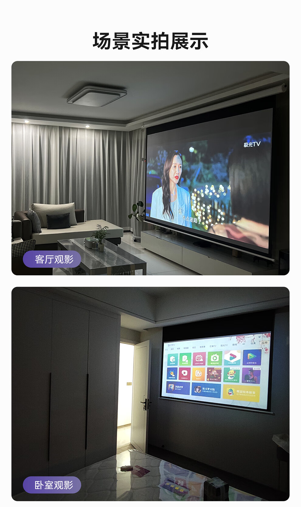买投影仪快两年了 一直投的白墙 效果勉强可以看 但肯定不是高清的 我买的极米newz6X 家用里已经算很不错的投影仪了 一直想买个投影幕布 也研究了几天 白塑 白玻纤 灰玻纤 金属 最终选择了白玻纤 也肯定了我的选择是对的 显示效果非常高清 色彩还原度很强 搭配极米newz6x 简直完美 安装很简单 找物业师傅打了2个洞 放入金属膨胀螺丝 牢牢的锁住 膜布质量很高 重量也很实诚 618的价格简直吊打同类品牌 买电动幕布选这款就够了 强推 家人们可以放心冲