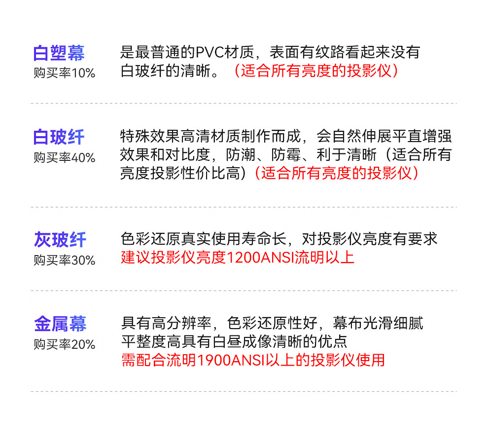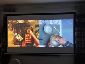 屏幕光泽很好,看起来很清晰,非常满意。貌似买的尺寸有点偏大了。屏幕的清晰度应该还跟投影仪本身有关系,我们现在配的是极米高亮版的投影仪,看起来效果还是不错的。