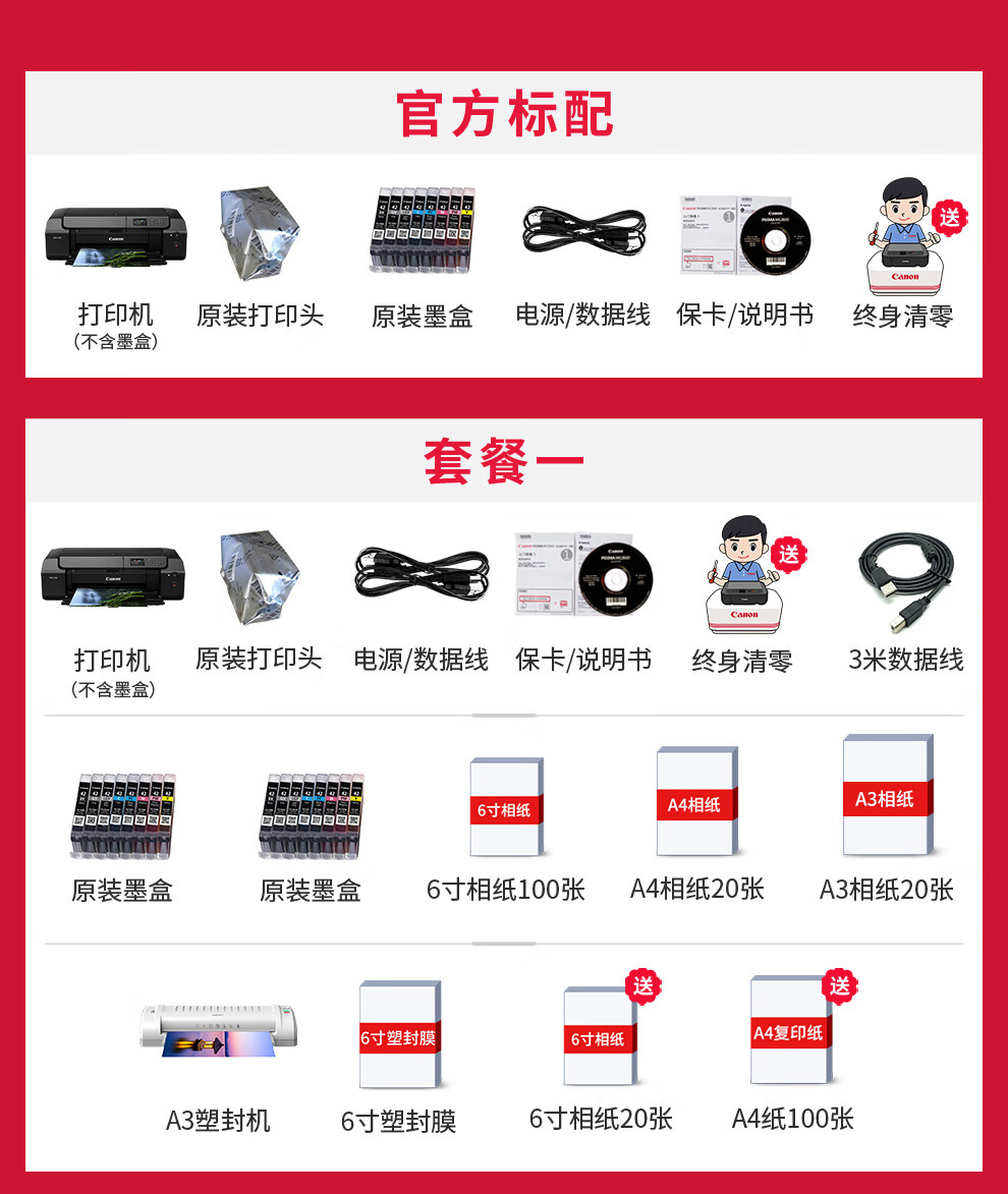 佳能(Canon) PRO-200S/310/510彩色喷墨A3+专业照片打印机A2大型影楼商用相片8/10/12色艺术照摄影作品输出 PRO310【A3+/10色颜料墨水/有线+无线】 套餐一
