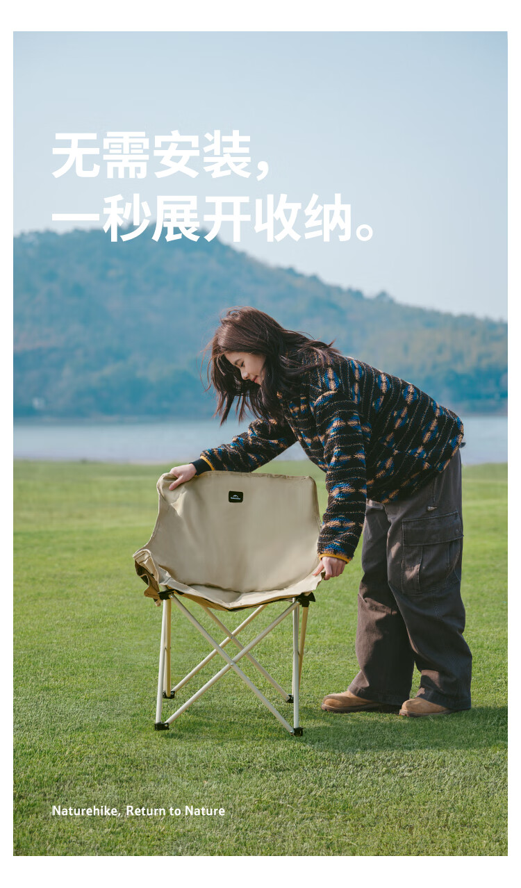 NatureHike挪客露营椅子户外月亮椅折叠椅野餐便携沙滩躺椅钓鱼椅凳子桌椅 大号款-卡其色