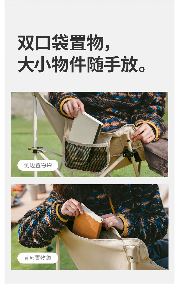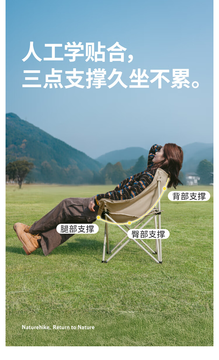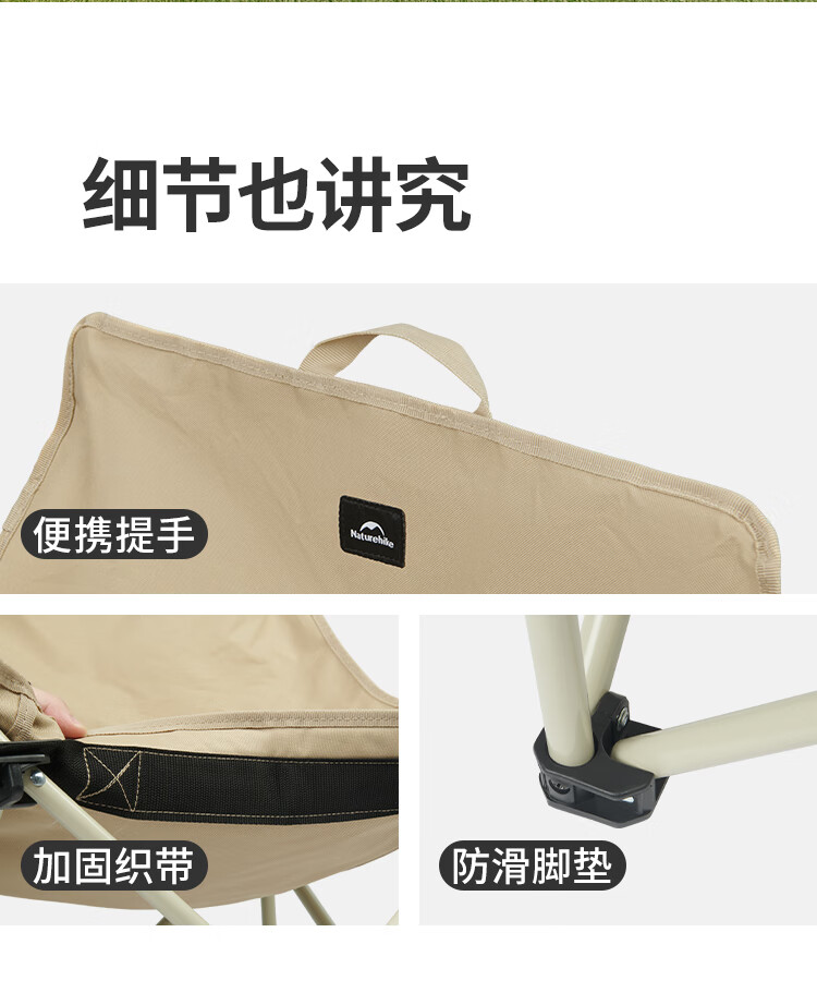 NatureHike挪客月亮椅户外折叠椅靠背椅躺椅露营椅便携沙滩躺椅钓鱼椅凳子 【卡其色小号】便携提手 坐感舒适