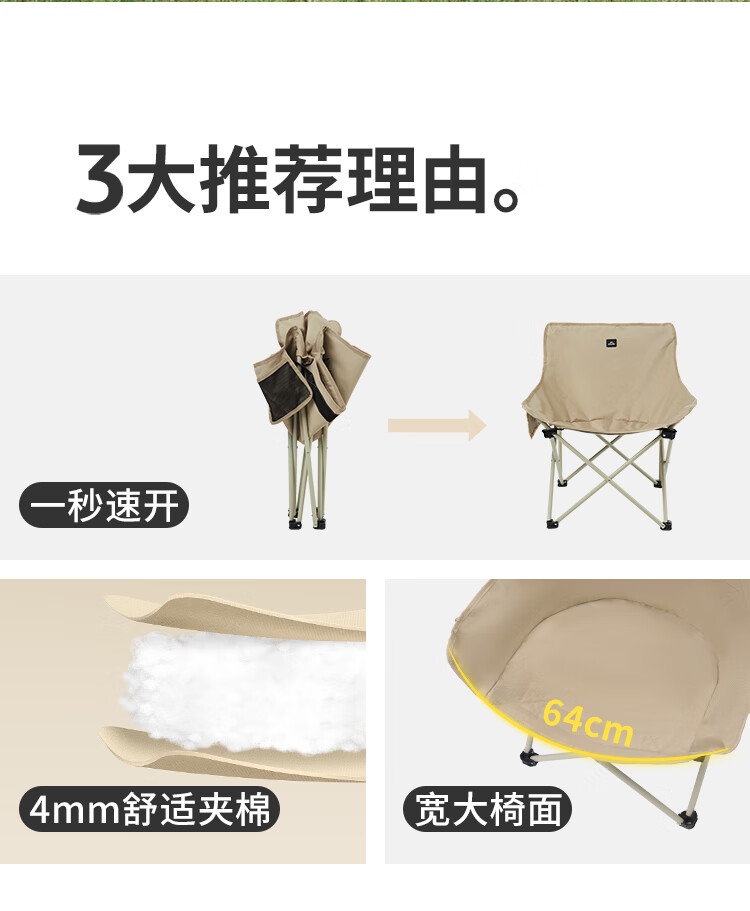 牧高笛(MOBIGARDEN)月亮椅户外露营野营折叠椅子休闲钓鱼凳子野餐便携超轻折叠月亮椅 细沙黄 经典款
