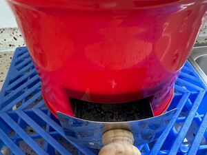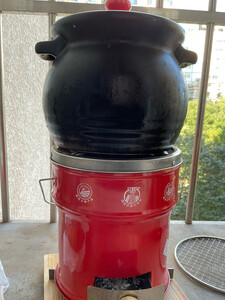造型非常漂亮,颜色非常亮骚的一款炉子,收到之后立马迫不及待的打开包装,拿出我的看和我的铁铁炉子烧开水,烧起来火很旺,看着很舒服,应该不错。下完水之后,准备煮一锅粥,看看炭火粥是不是更好更好吃,期待已久