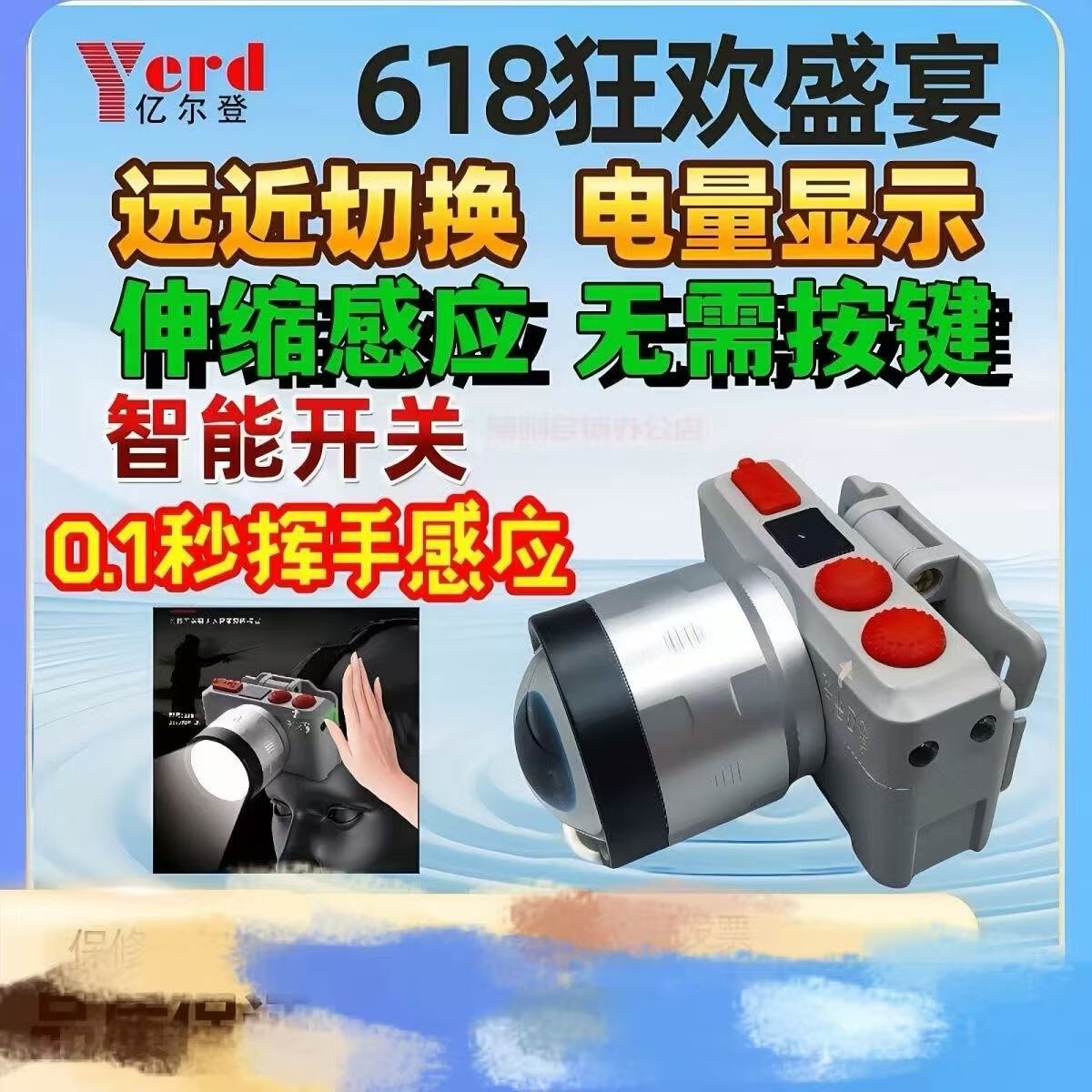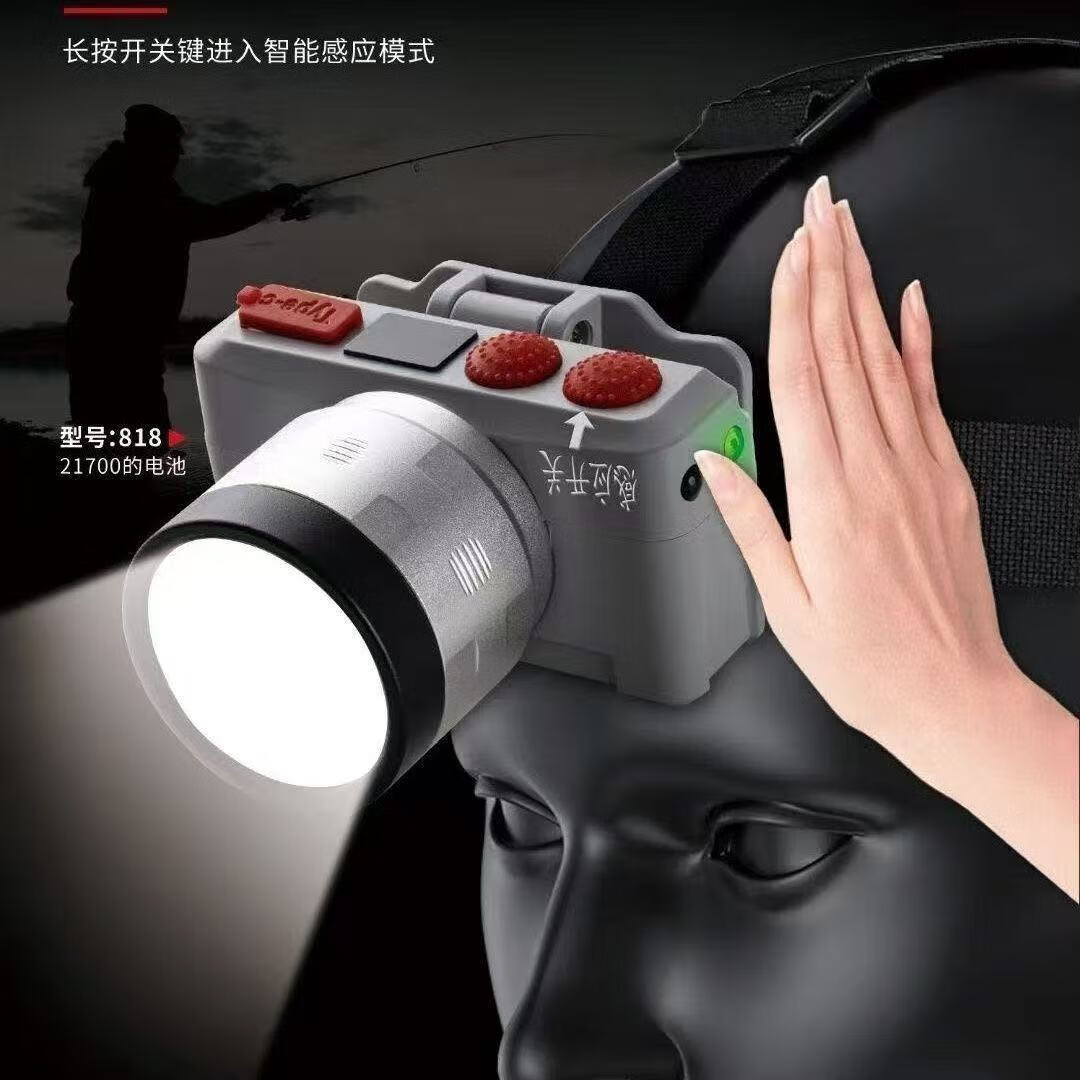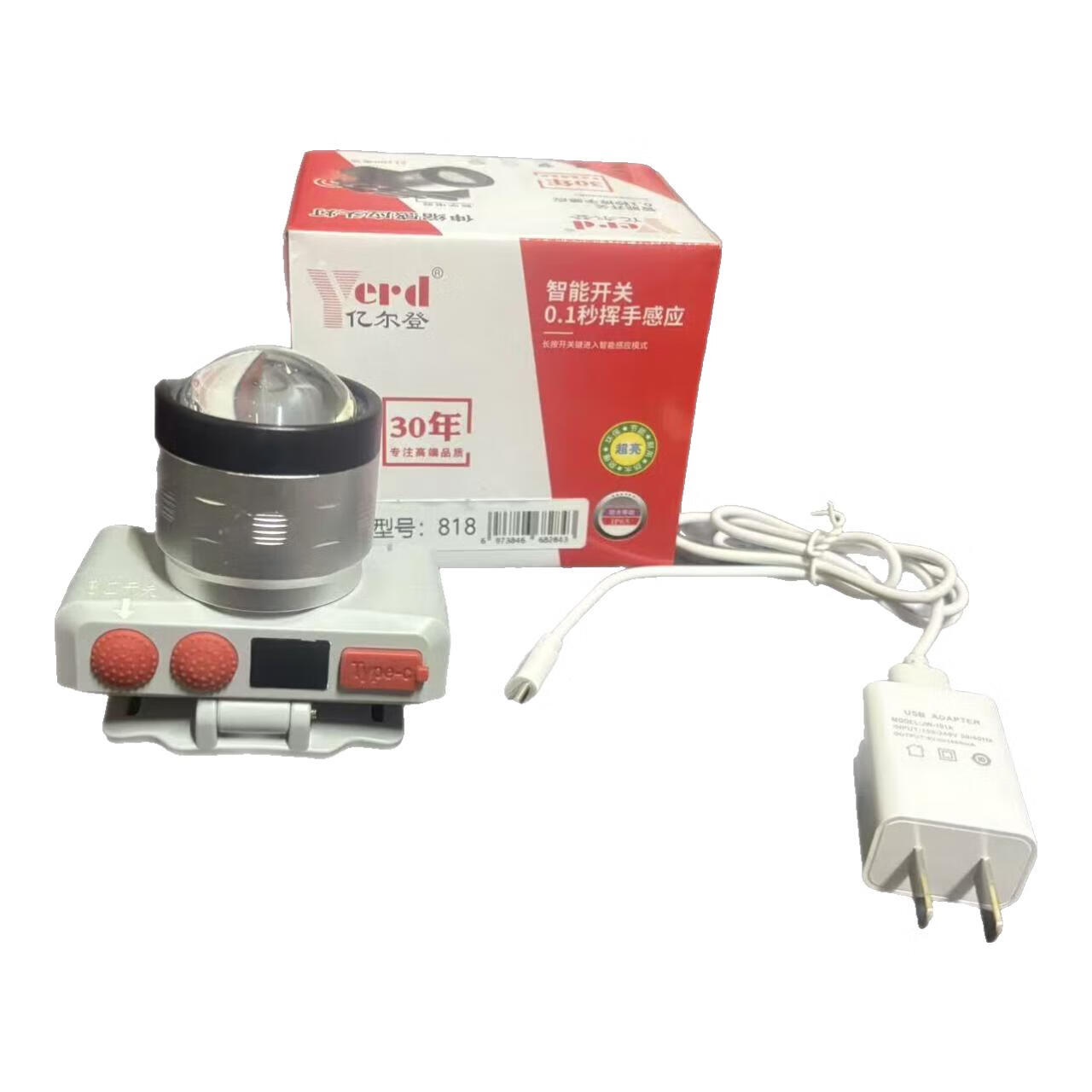 亿尔登YERD亿尔登新款818感应强光头灯可调光21700锂电池超长续航钓鱼户外露 亿尔登818白光【4000毫安】1套