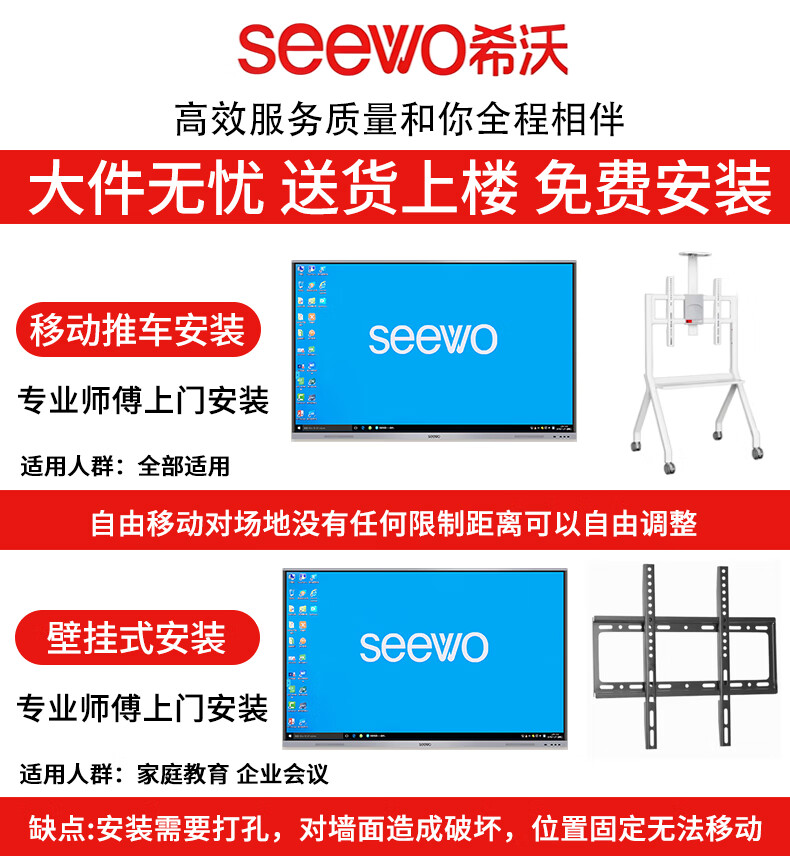 希沃SEEWO65英寸电子白板多媒体教学触摸可移动电视会议平板4k一体机 86英寸(含移动推车) i3 8G 256G(免费送货+安装)
