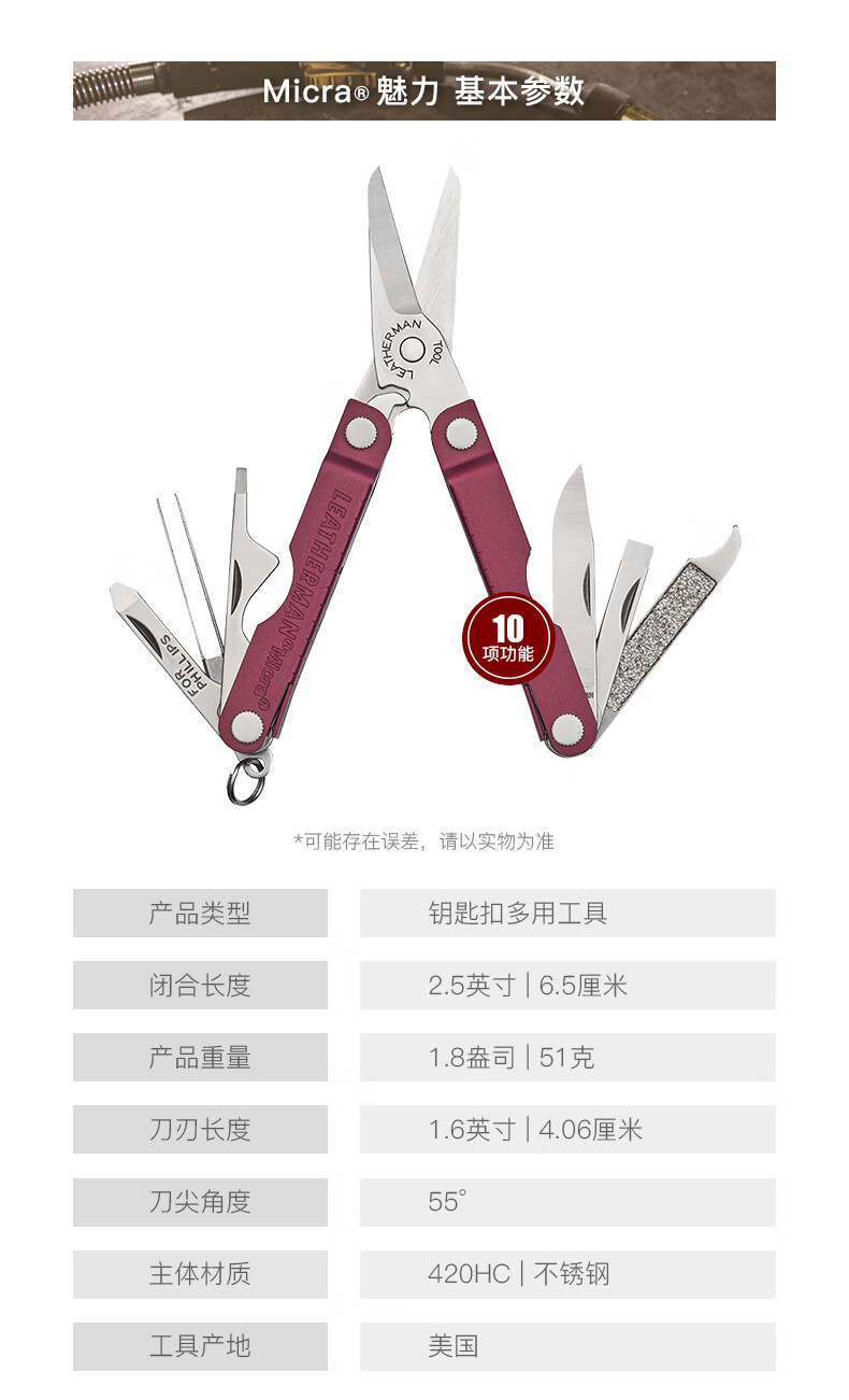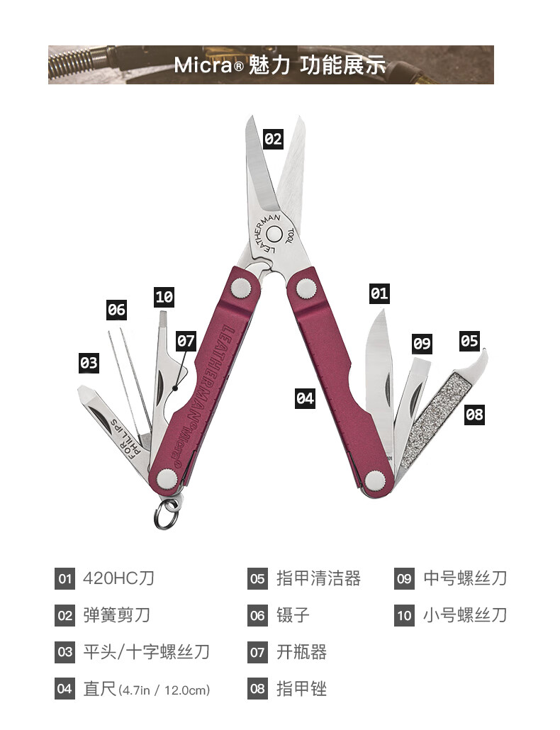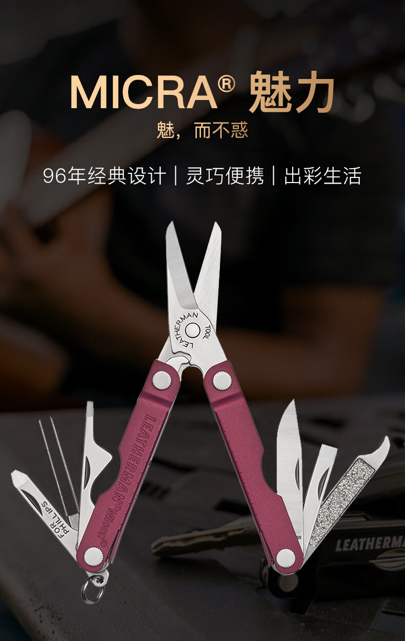莱特曼(LEATHERMAN)莱泽曼魅力MICRA 樱桃红 多功能剪刀可折叠钥匙扣多用工具随身EDC