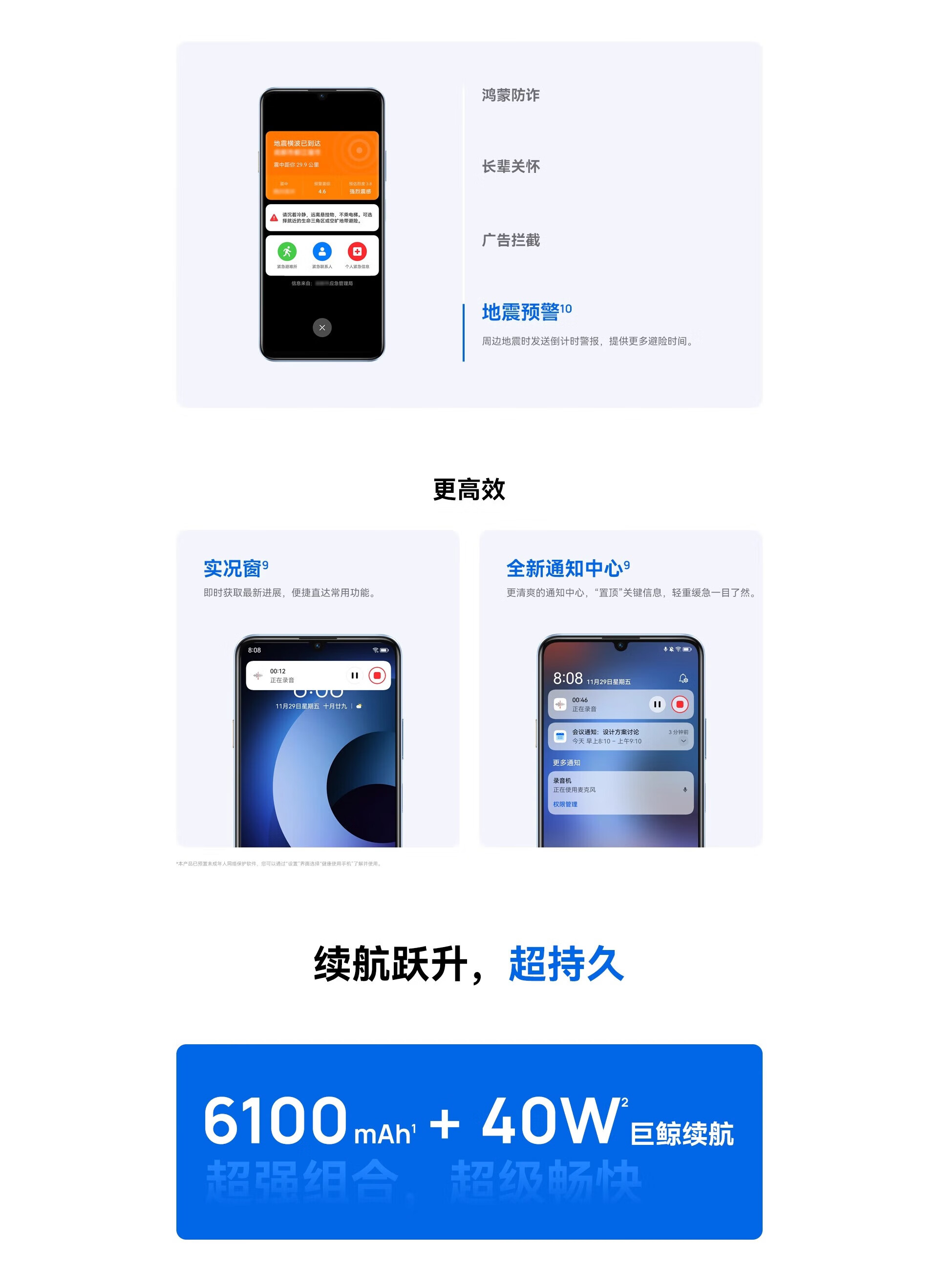 华为智选手机 畅享70plus 5G全网通 6100mAh+40W续航鸿蒙生态 巨鲸续航 雪域白-8G-256GB 官方标配【赠2年店铺延保+90天碎屏保】