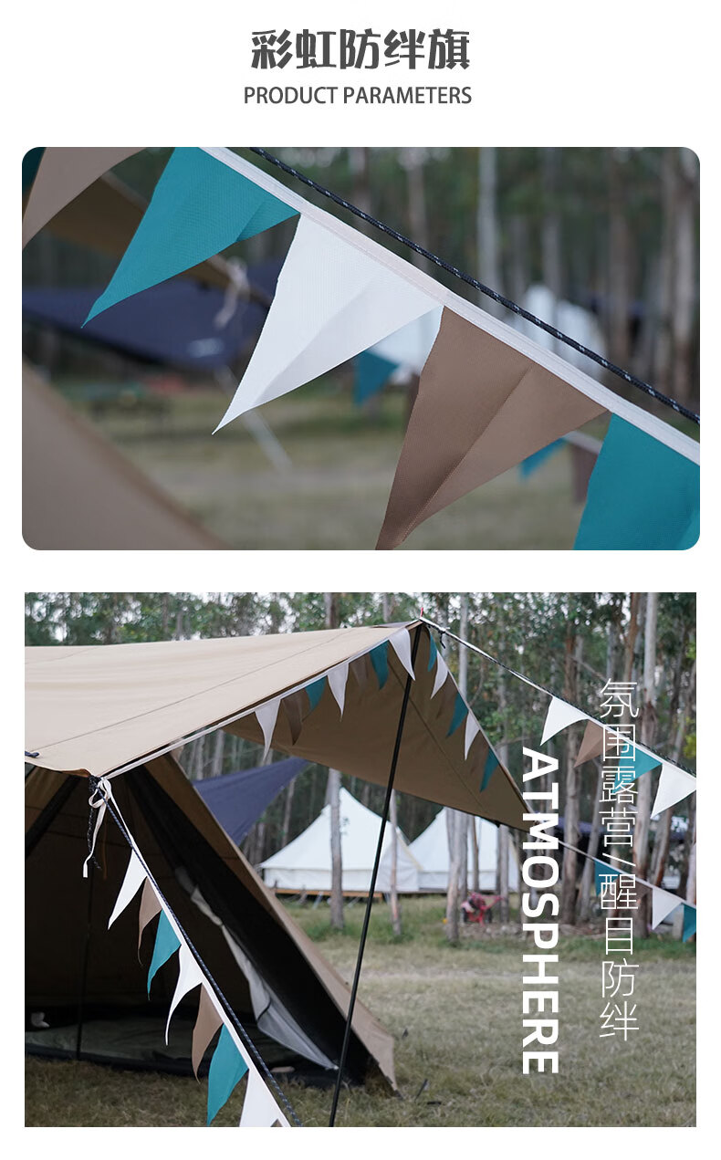 拜杰露营三角旗露营三角旗天幕帐篷氛围旗露营氛围布置旗野营装饰旗串 6米15面三角旗(涤纶布)