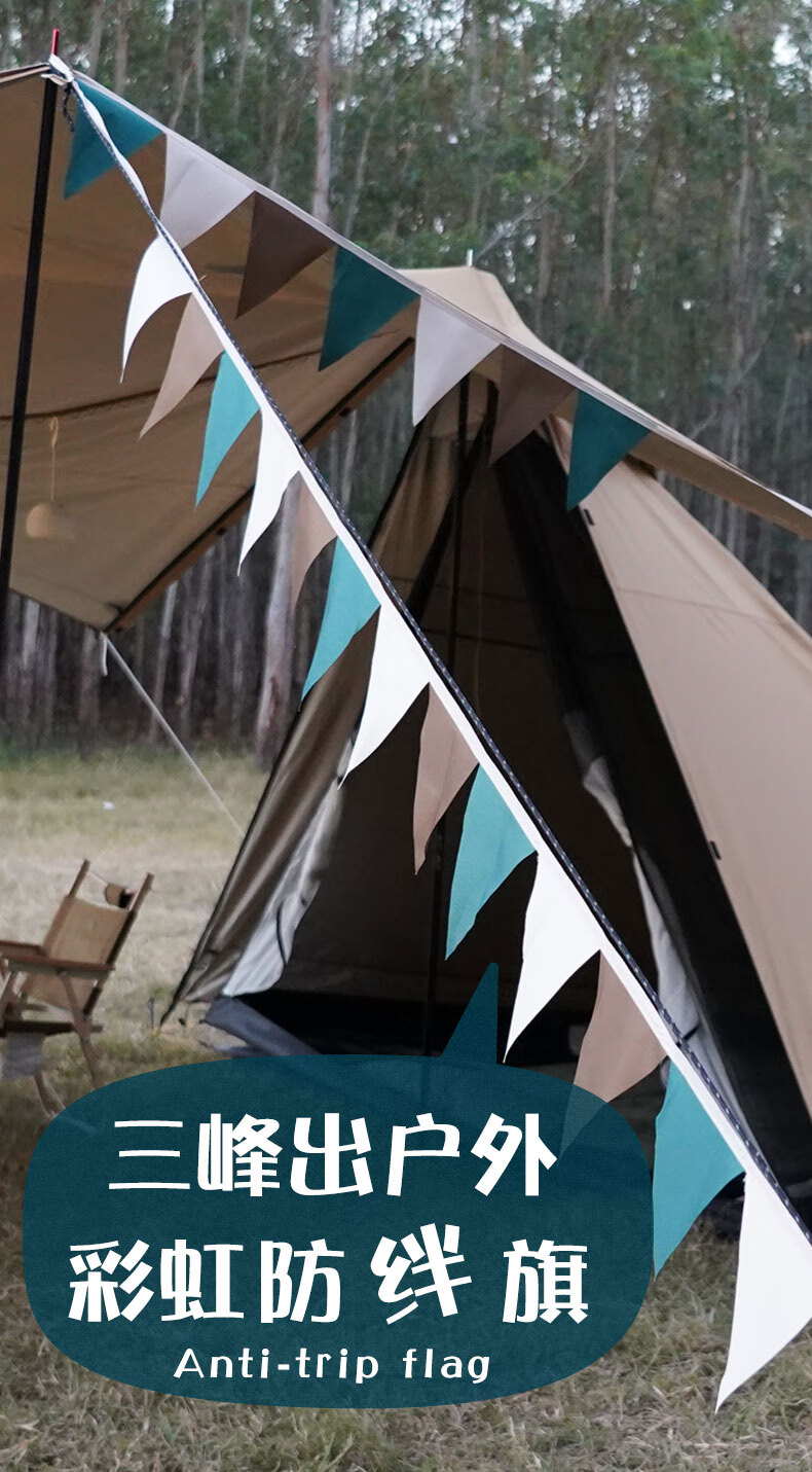 三峰出 户外露营彩旗三角小旗子野营装饰警戒旗团队生日派对串旗活动氛围露营户外彩旗 彩旗3M*4条