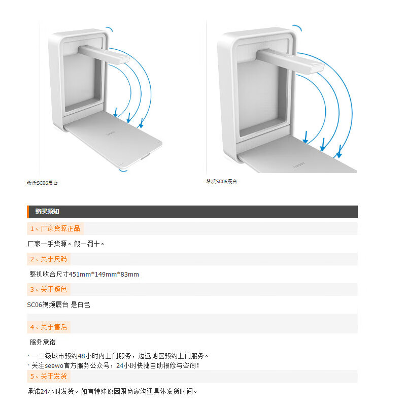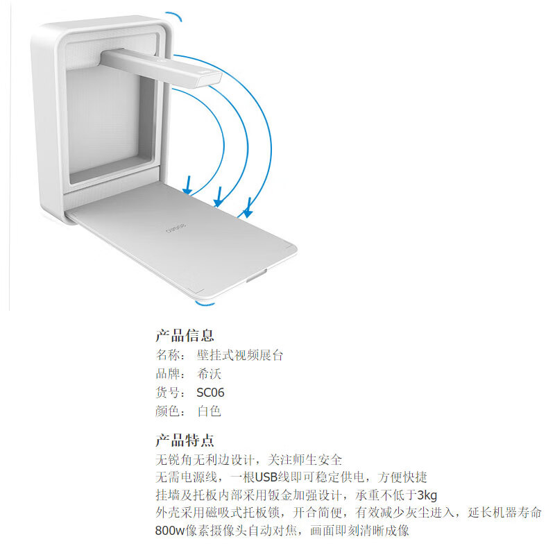 希沃视频展台 高清壁挂式教学高拍仪 物证仪 投影 SC06 800万像素 SC03 800万像素