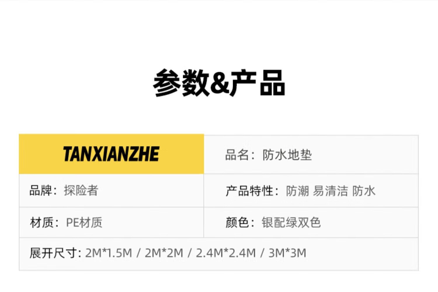 探险者防潮垫户外露营野外野餐地布防水地垫野炊垫子便携地席 双面铝膜2*2米