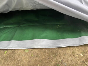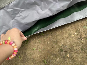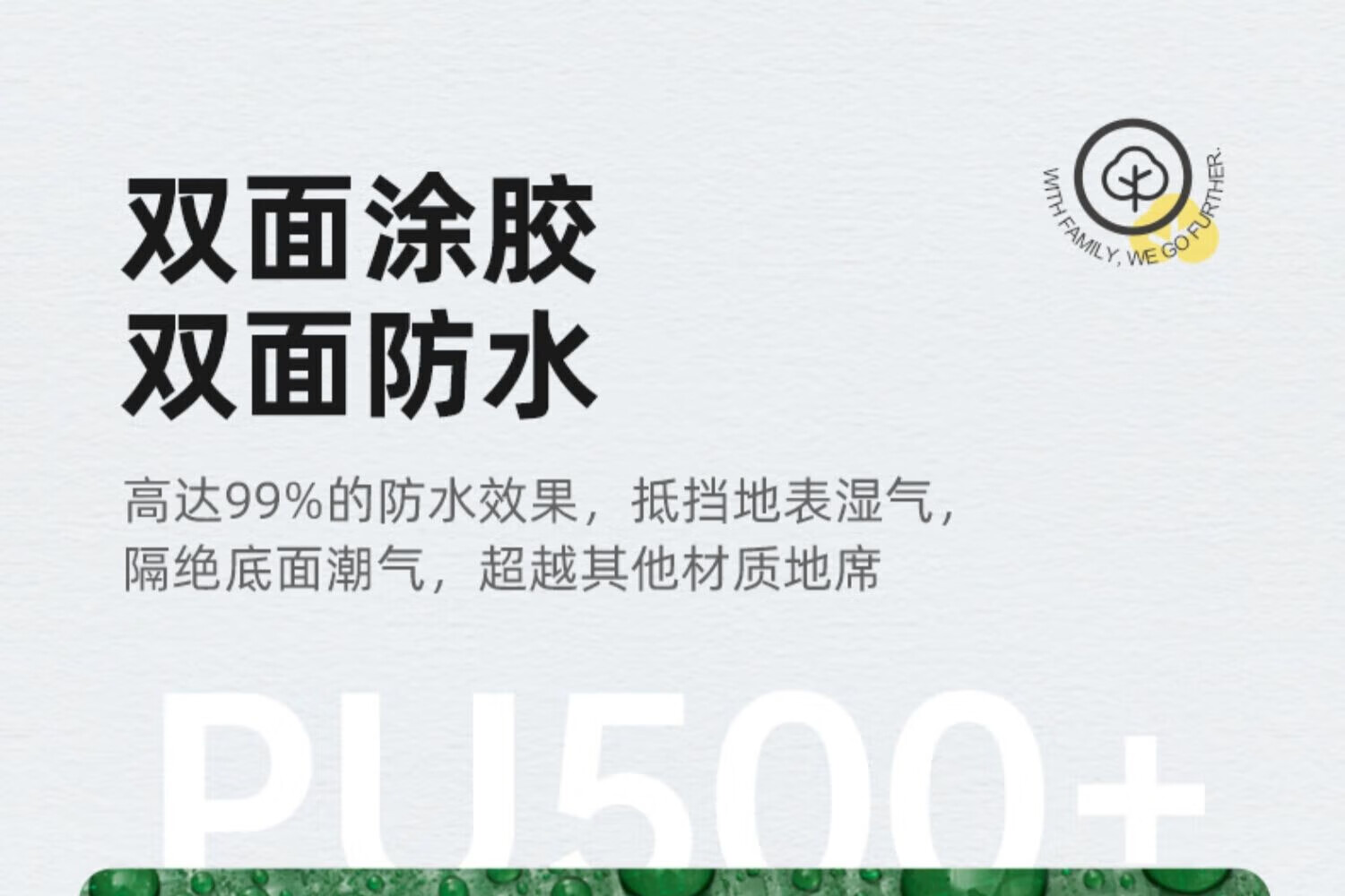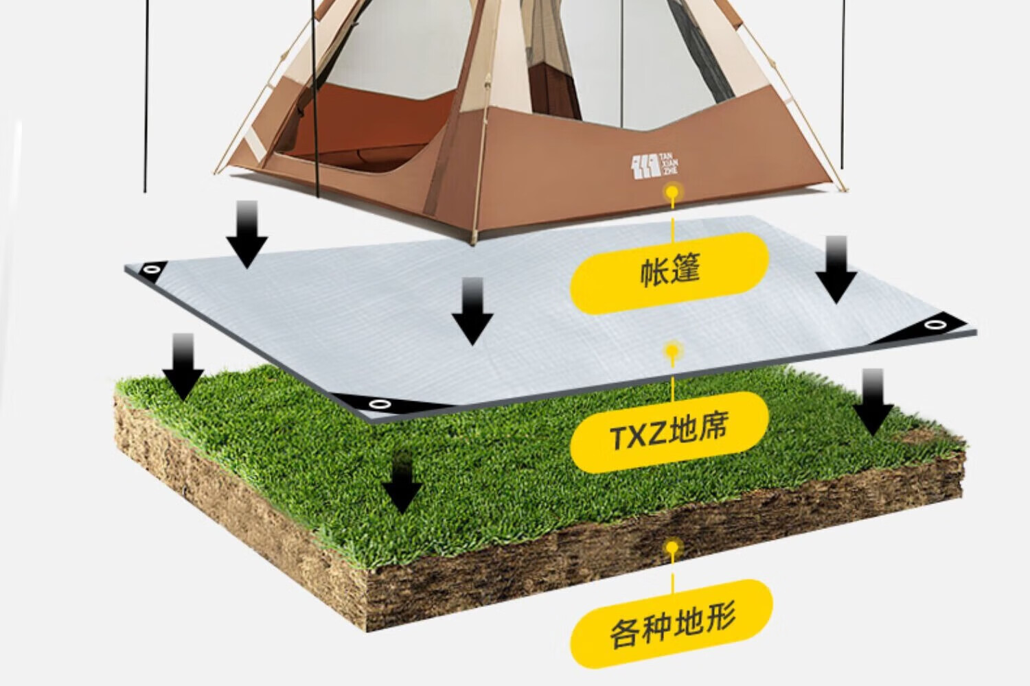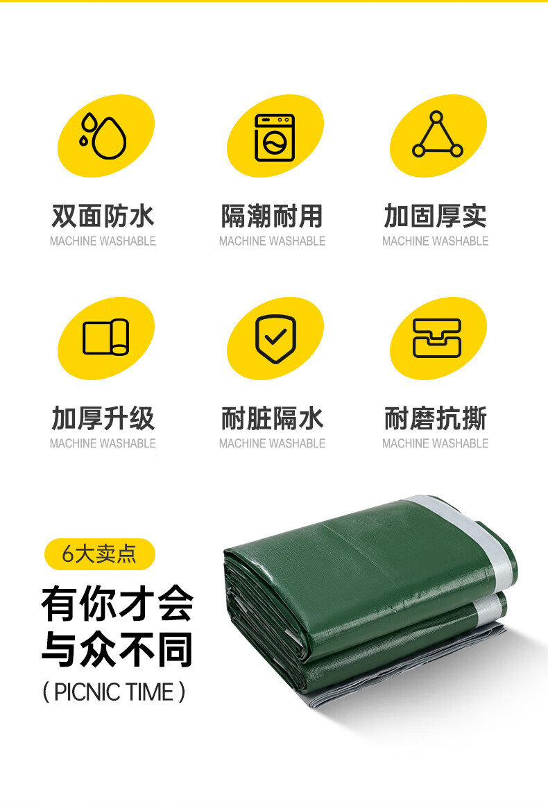 垫子很厚实 很有份量 不用担心把帐篷扎坏 有地钉孔设计 最重要的是能防水防脏 不粘草
