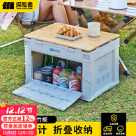 探险者露营收纳箱户外储物便携折叠车载后备箱可拆桌板多功能箱子 50L-卡其色收纳箱+竹桌板