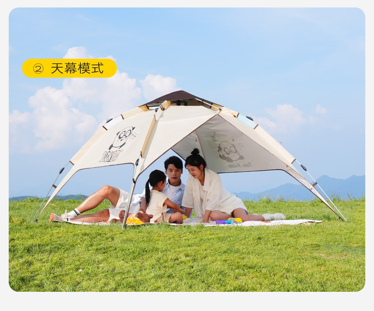 何佳功新燕尾天幕户外露营懒人免安装加厚黑胶防晒遮阳防雨速搭天幕 速搭型12㎡银胶天幕3.3*3.6米2-4人(1