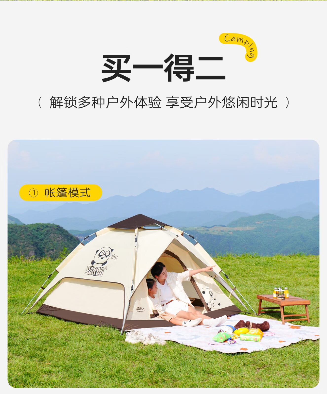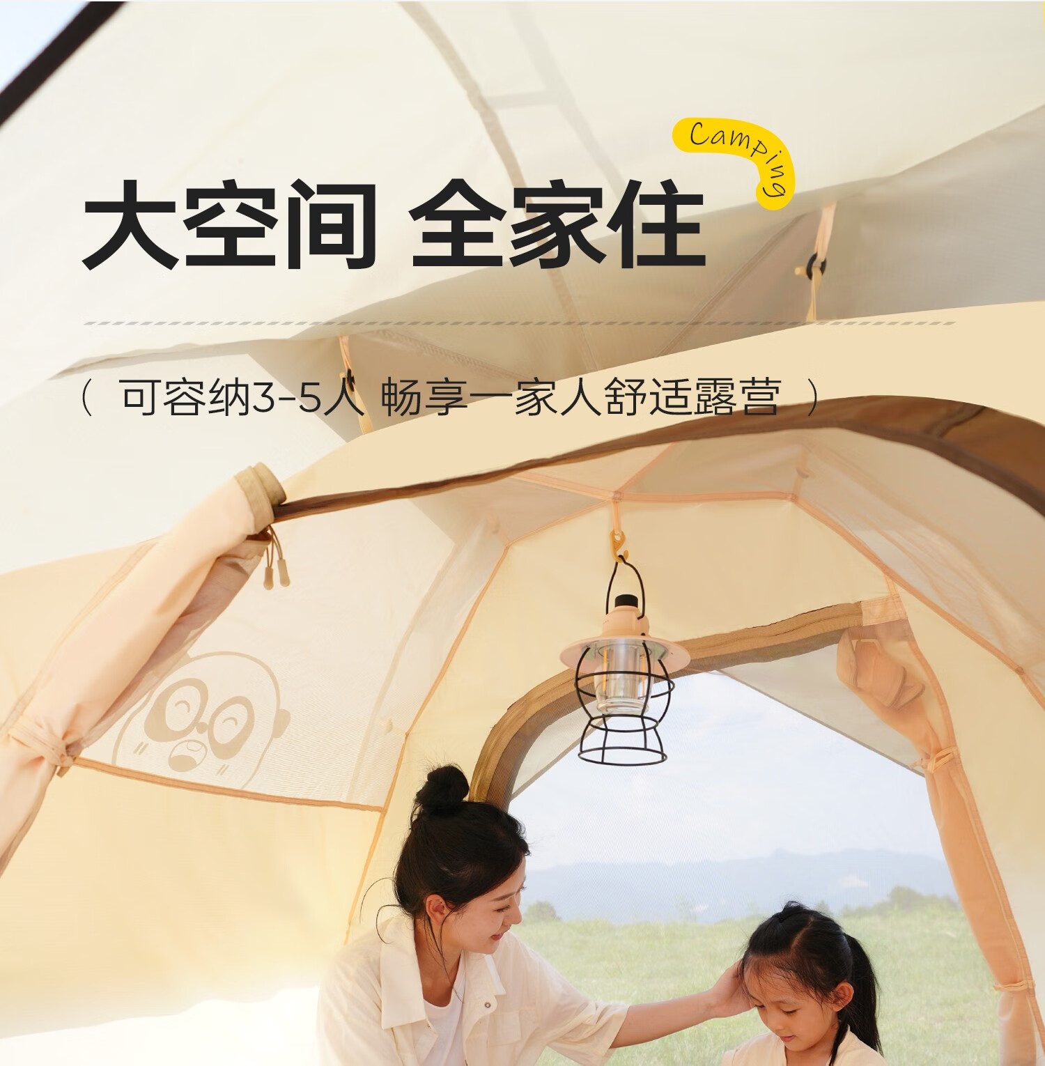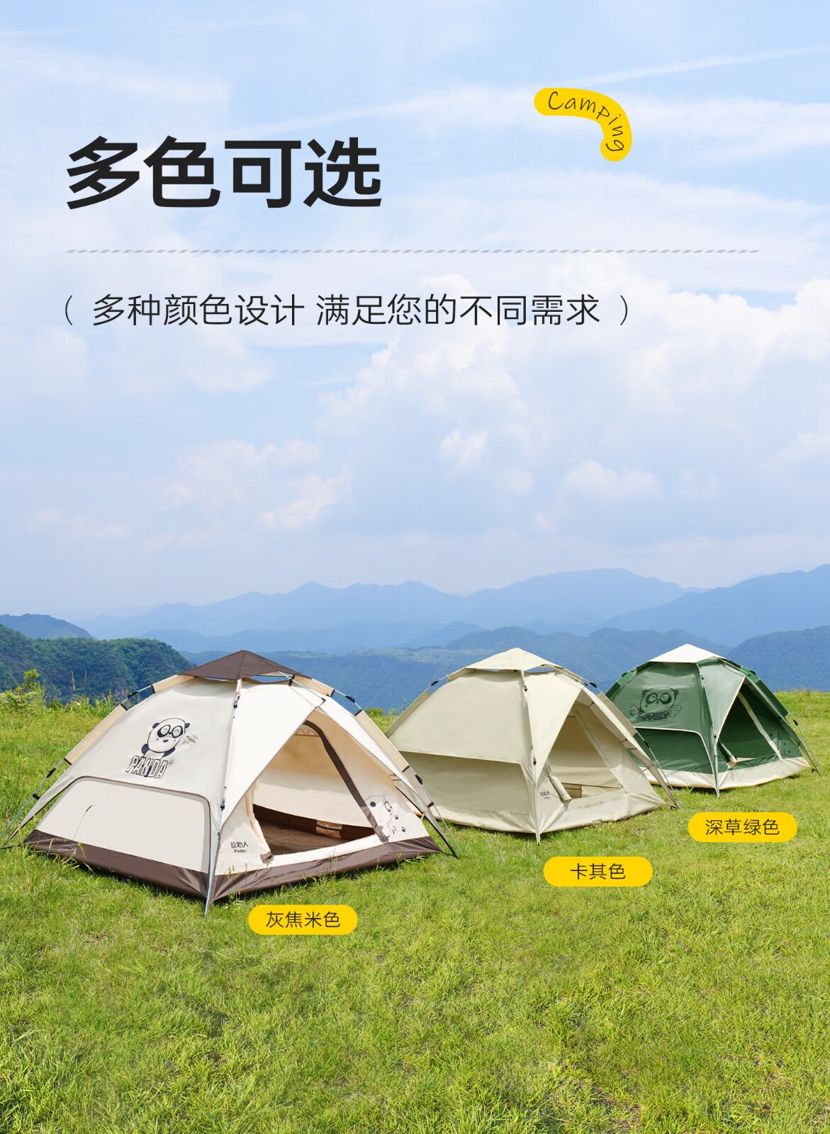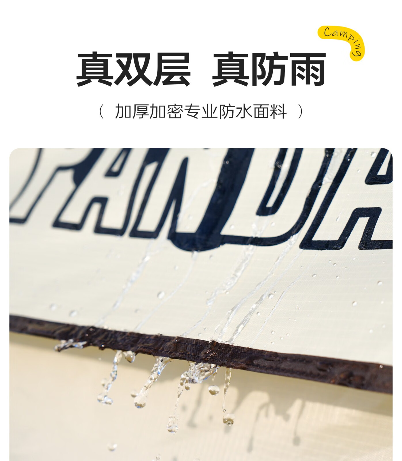 原始人黑胶帐篷户外折叠便携式野营露营全套装备过夜加厚防雨防晒 【双层自动帐篷】熊猫灰焦米色