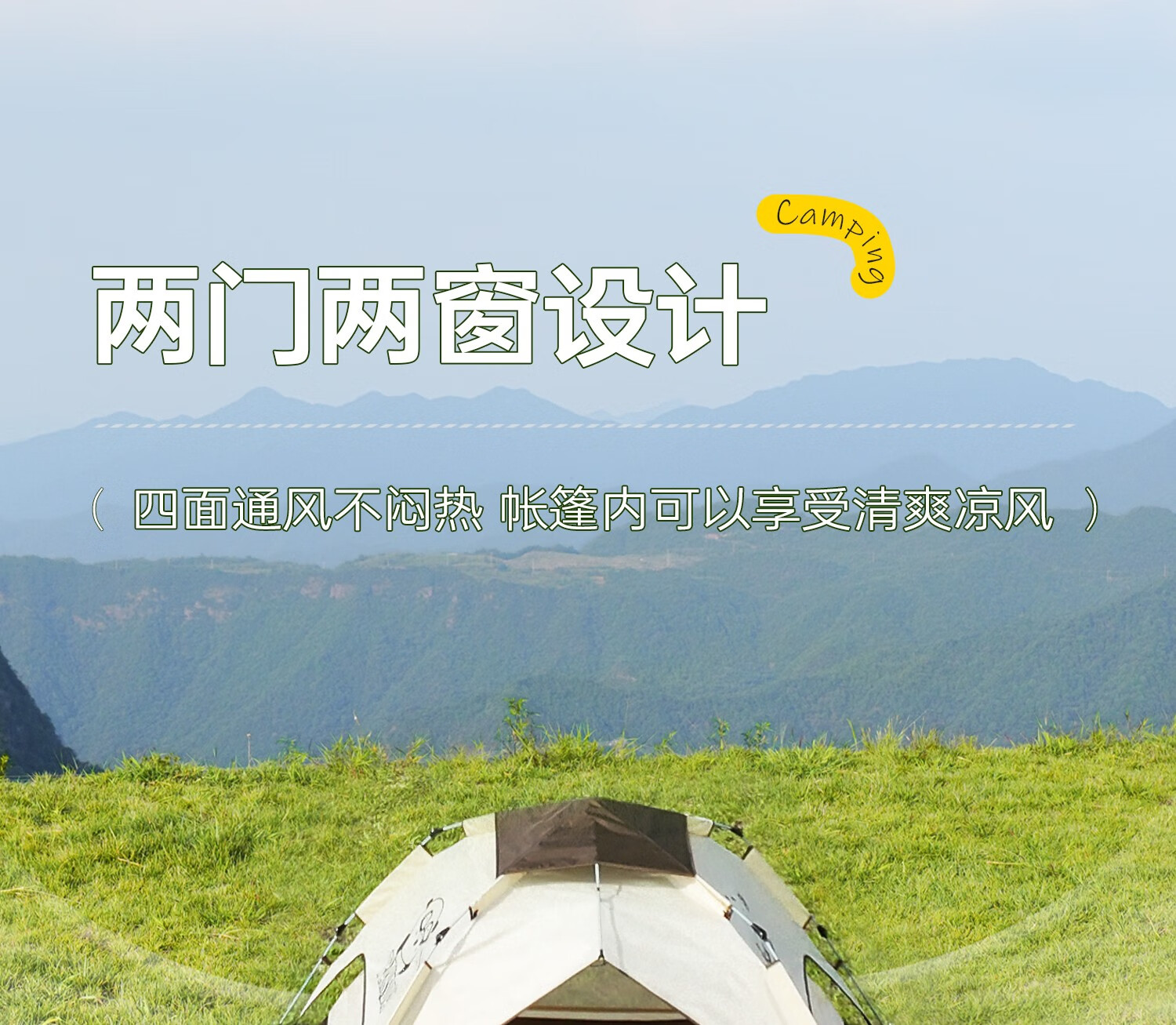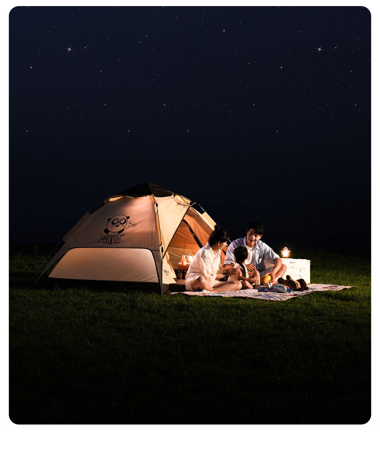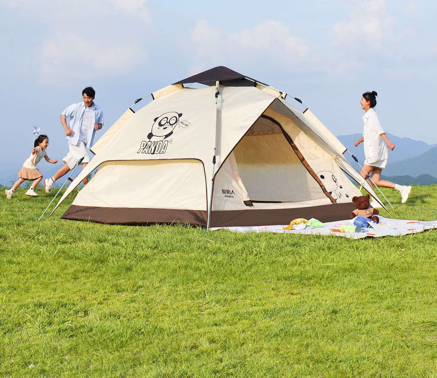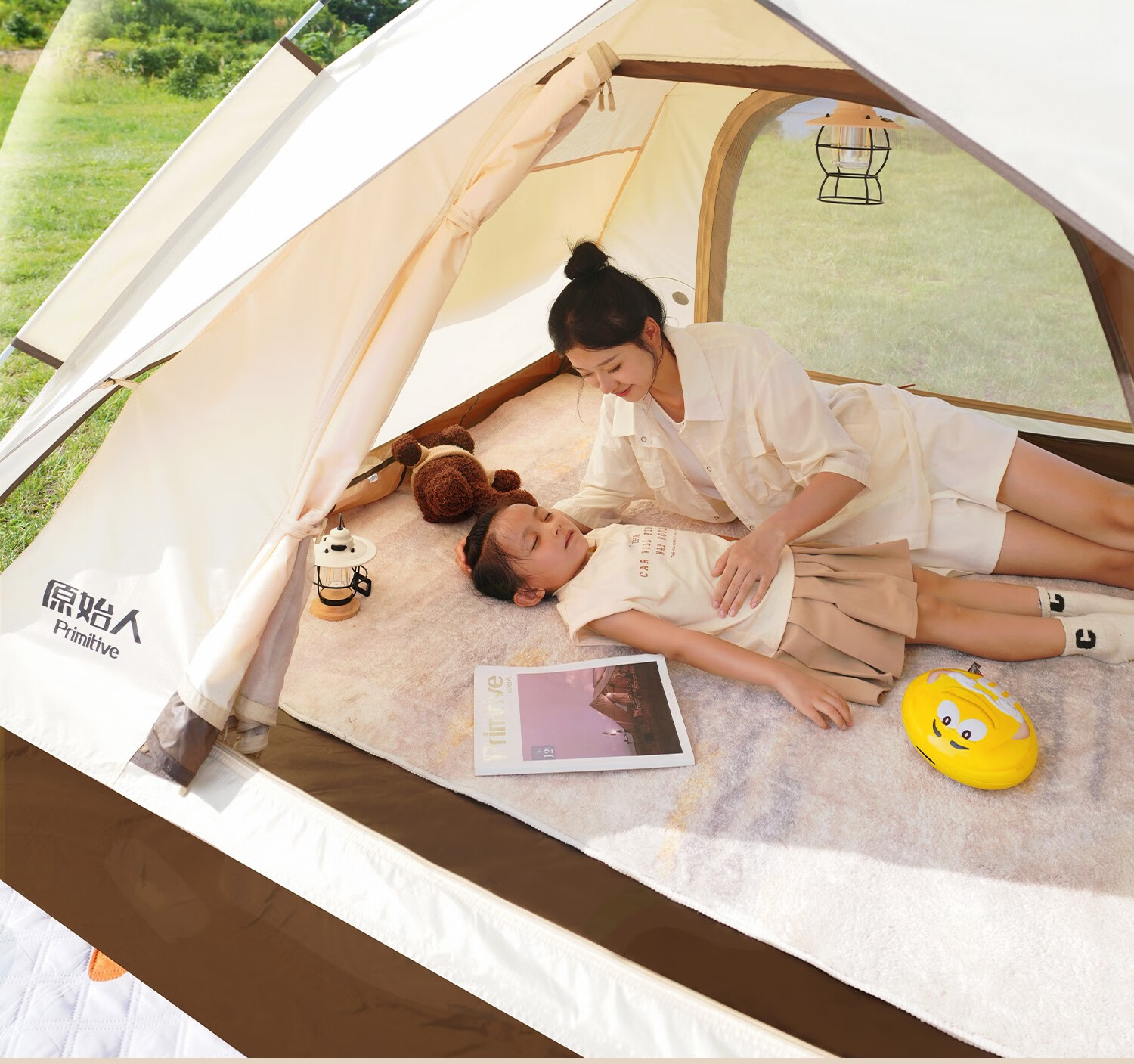 原始人黑胶帐篷户外折叠便携式野营露营全套装备过夜加厚防雨防晒 【双层自动帐篷】熊猫灰焦米色