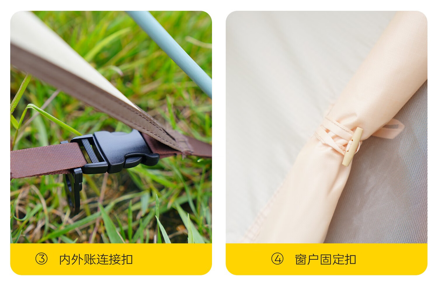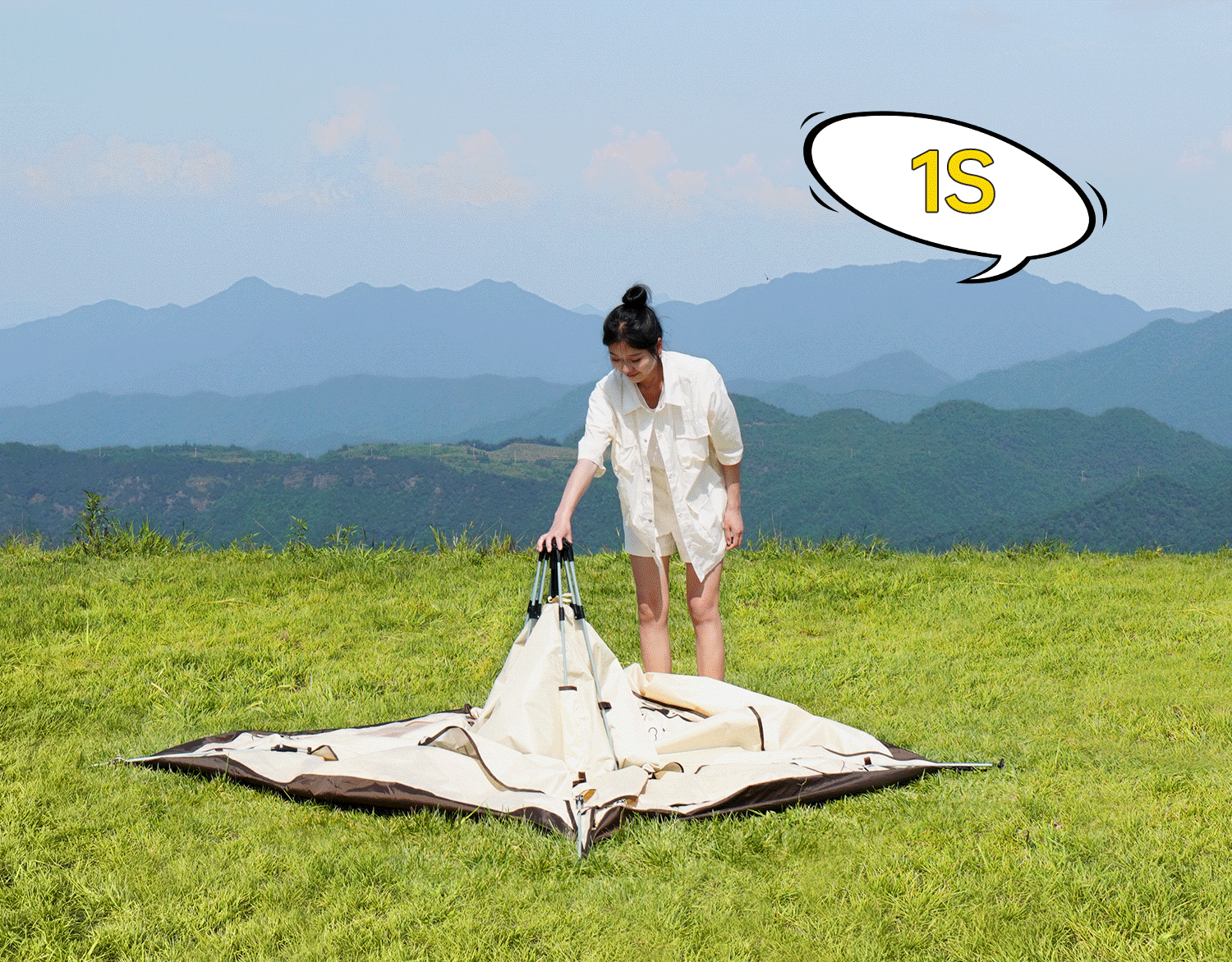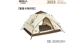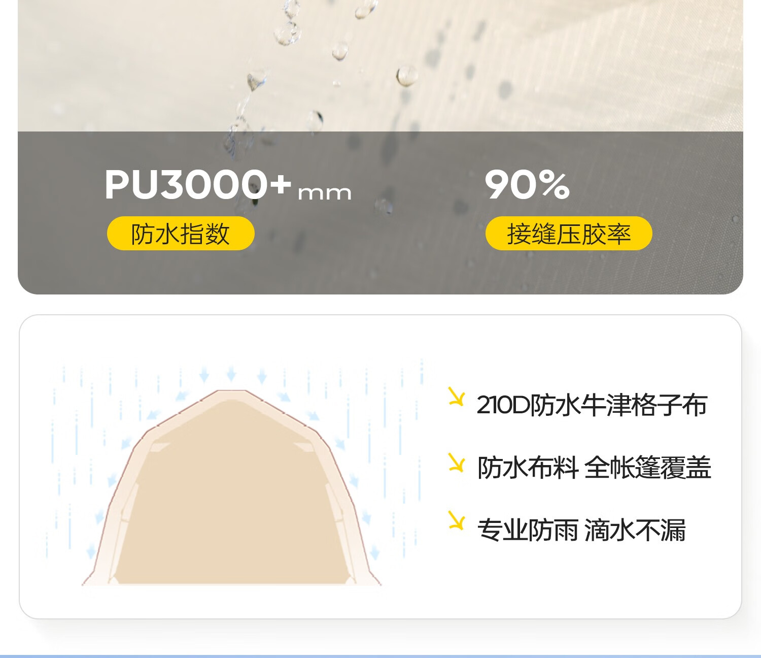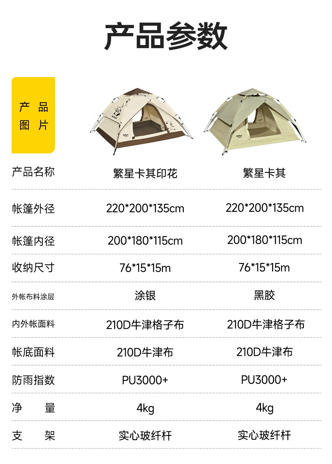 原始人黑胶帐篷户外折叠便携式野营露营全套装备过夜加厚防雨防晒 【双层自动帐篷】熊猫灰焦米色
