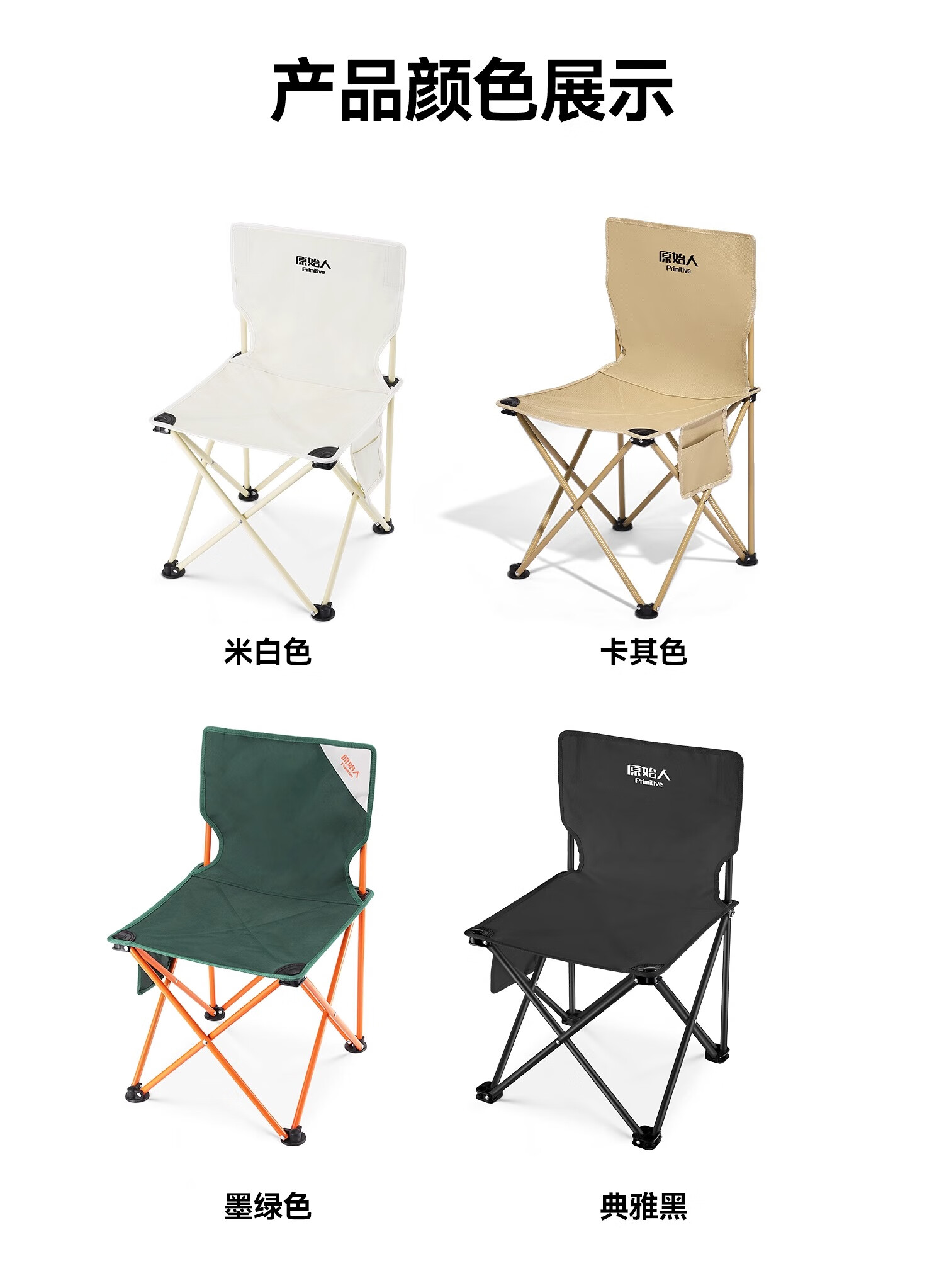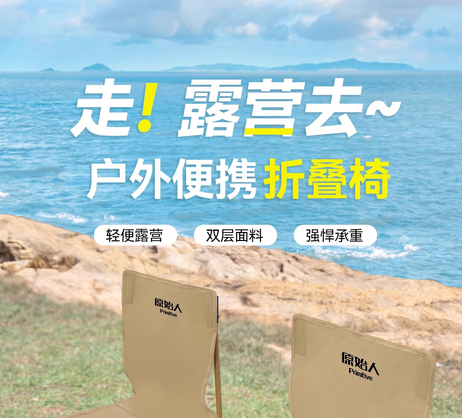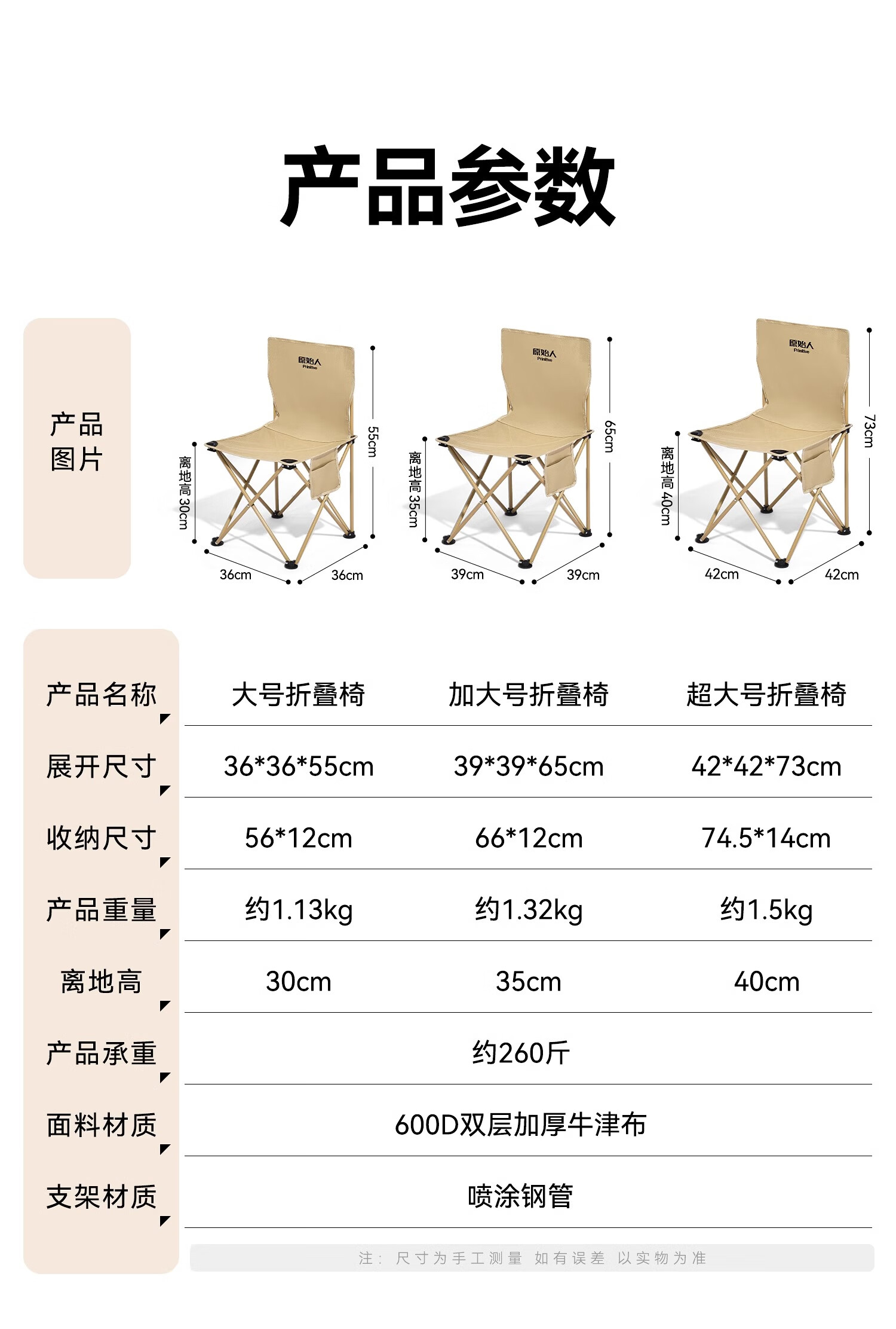 原始人户外折叠椅折叠凳露营椅子旅行桌椅野外便携式钓鱼椅沙滩椅 浅咖大号-双层加固 强悍承重