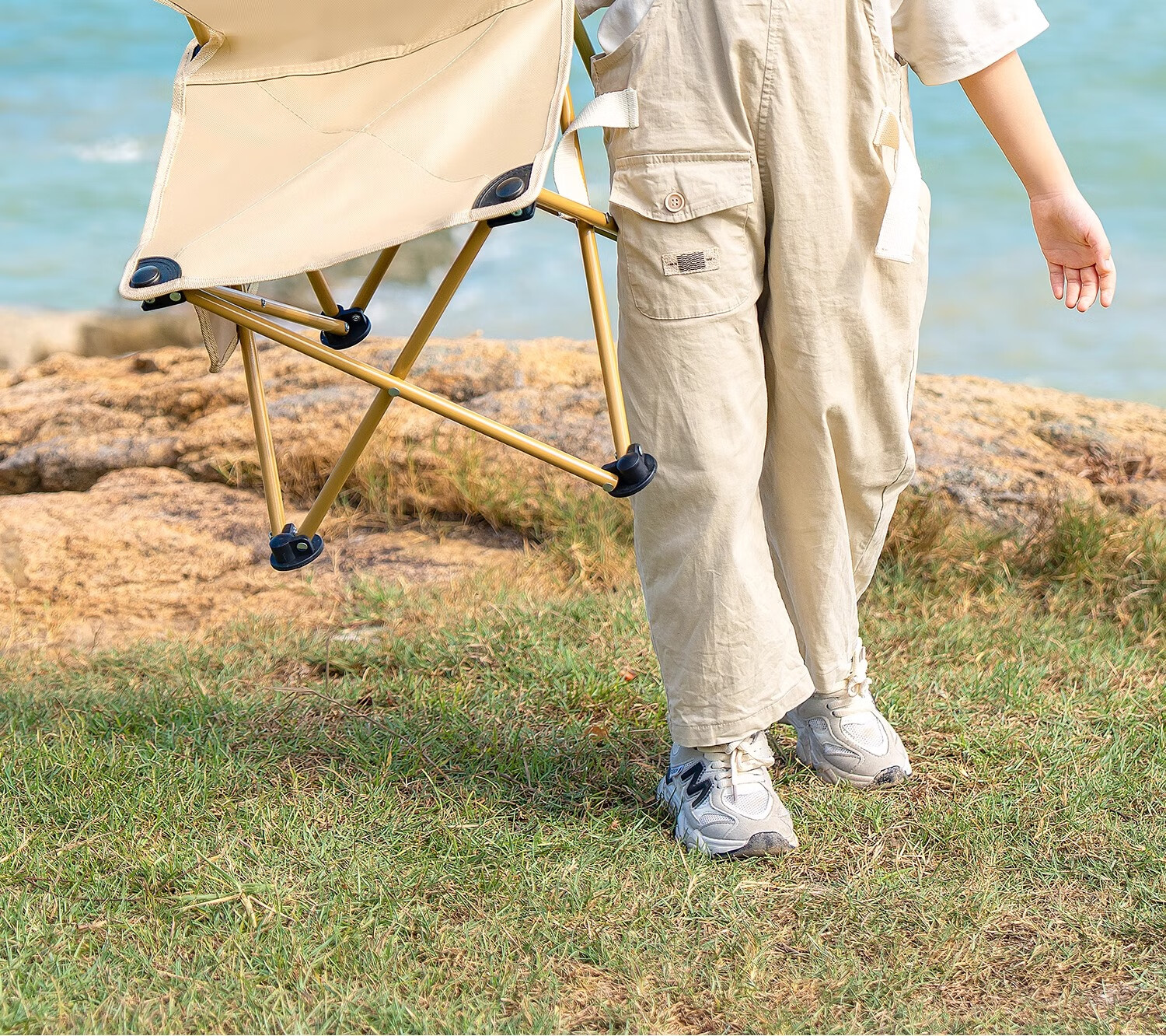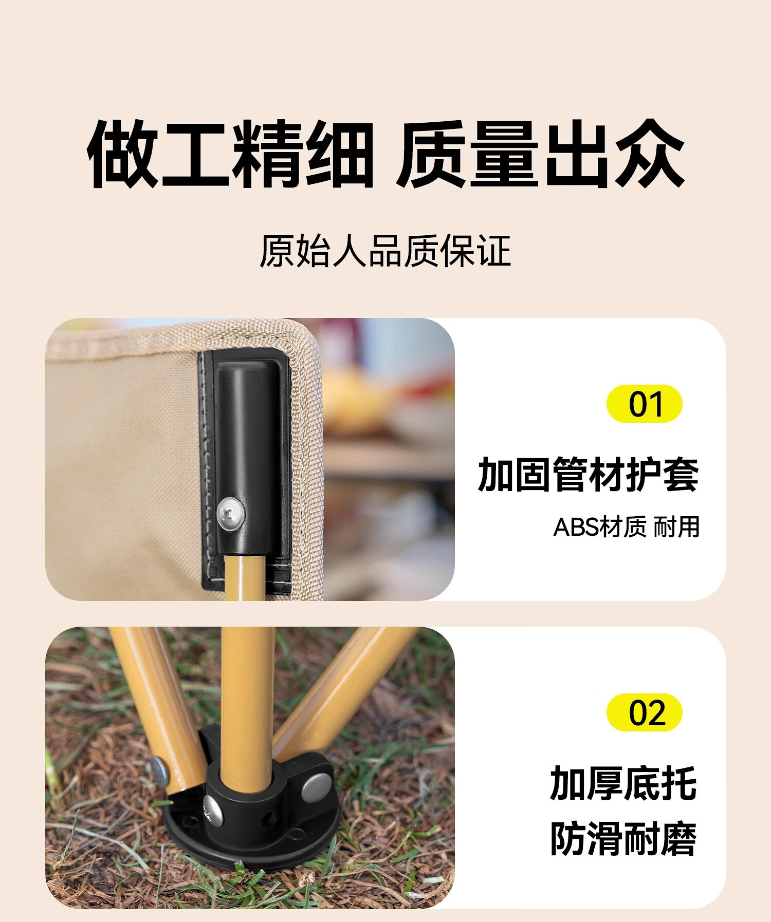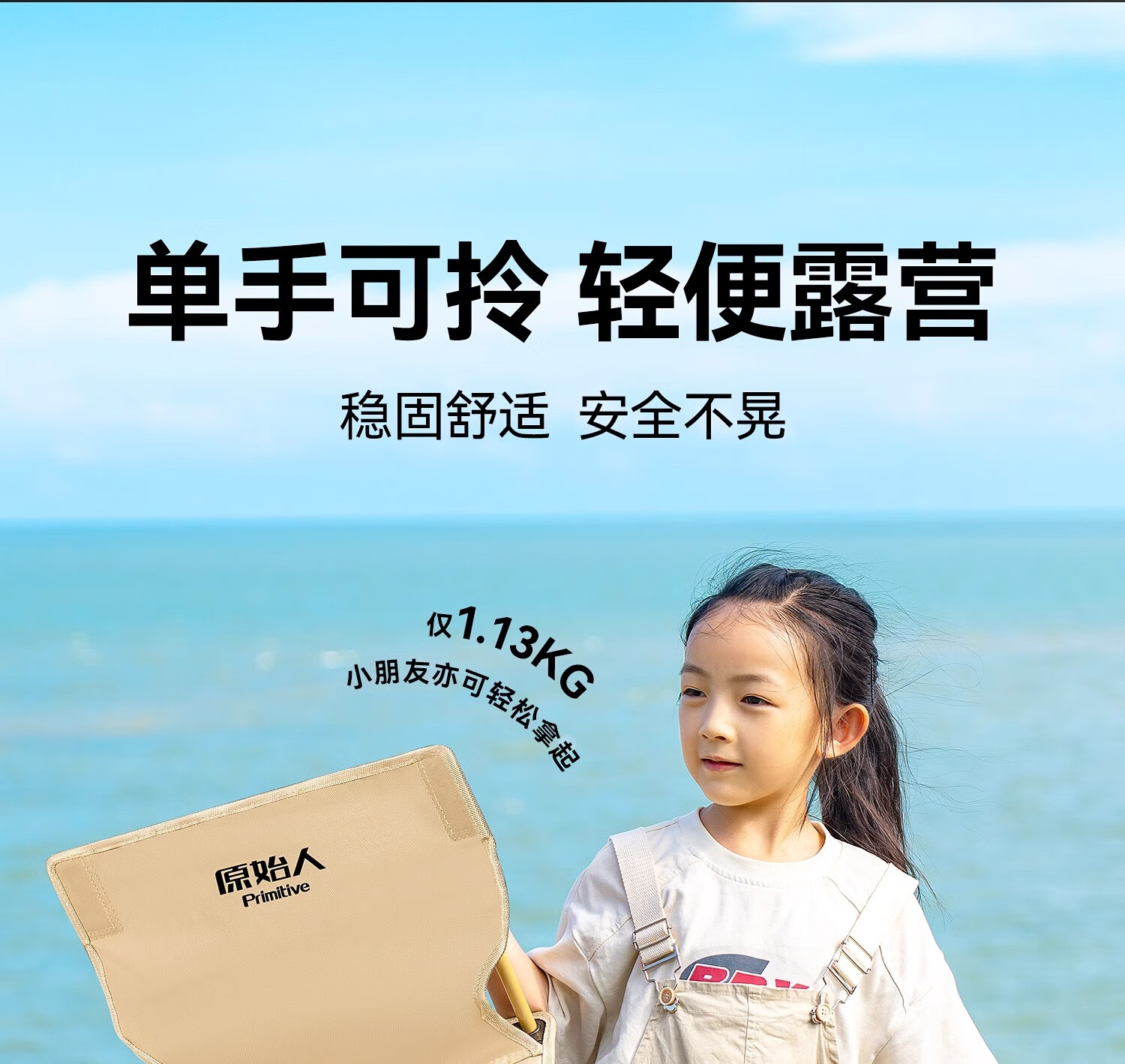 原始人户外折叠椅折叠凳露营椅子旅行桌椅野外便携式钓鱼椅沙滩椅 浅咖大号-双层加固 强悍承重