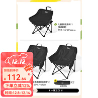 原始人儿童月亮椅户外折叠椅露营椅子桌椅沙滩椅便携躺椅钓鱼椅凳 一家三口(黑色)
