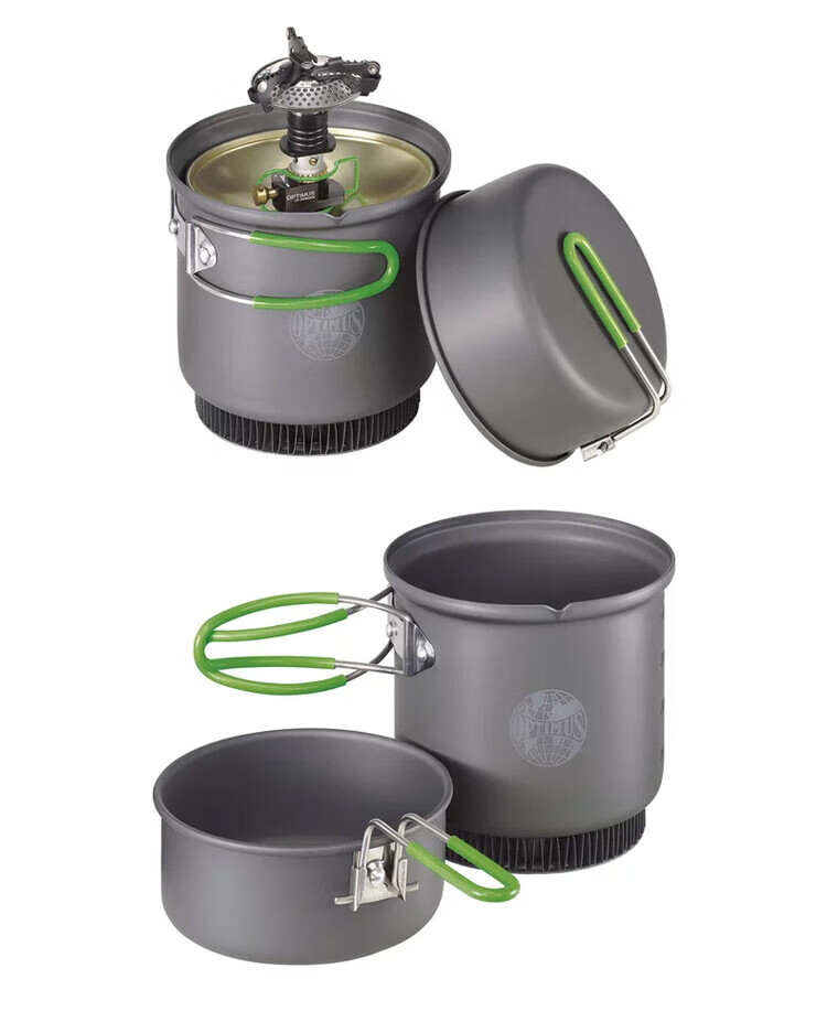 Optimus瑞典进口户外旅行徒步登山燃气灶户外炉具四件套HE便携折叠猛火灶