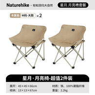 挪客户外折叠椅速开露营月亮椅子野餐便携沙滩钓鱼椅凳子懒人装备 大款-卡其色*2