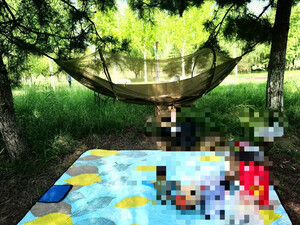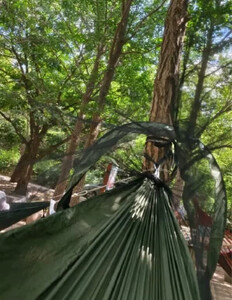 盛源 户外降落伞布吊床 轻便 野外露营休闲秋千有加粗绑绳 挂扣 双人 果绿配黄色